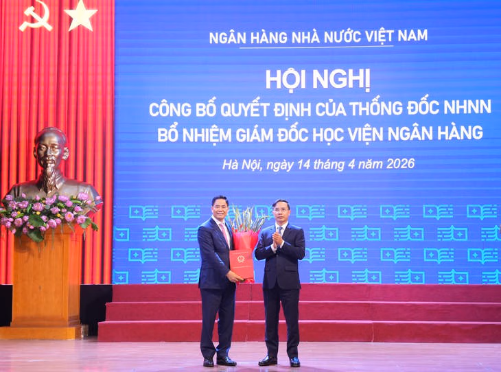Sáng 14/4, tại Trụ sở chính (Hà Nội), Học viện Ngân hàng tổ chức Hội nghị công bố và trao Quyết định của Thống đốc Ngân hàng Nhà nước Việt Nam về việc bổ nhiệm PGS.TS. Bùi Hữu Toàn - Bí thư Đảng ủy, Nguyên Chủ tịch Hội đồng Học viện giữ chức vụ Giám đốc Học viện Ngân hàng từ ngày 15/4/2026.