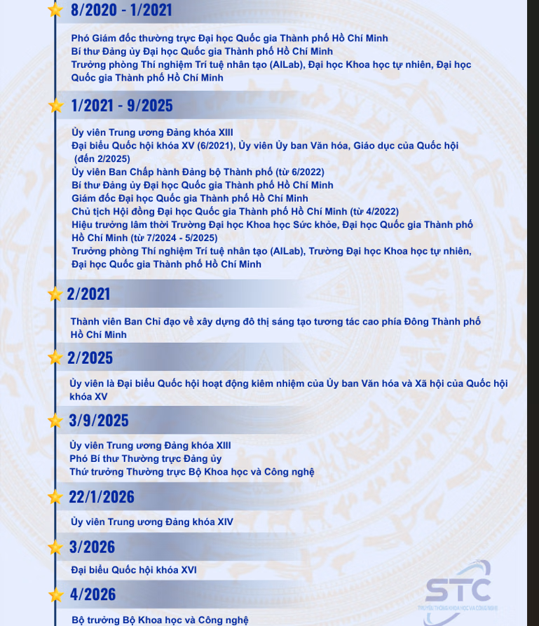 Ngày 8/4/2026, tại Kỳ họp thứ nhất, Quốc hội khóa XVI, đồng chí Vũ Hải Quân được phê chuẩn giữ chức Bộ trưởng Bộ Khoa học và Công nghệ nhiệm kỳ 2026–2031.