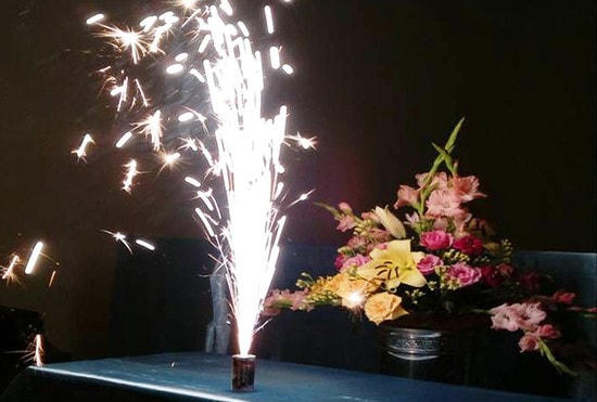 Điển hình như những loại que khi đốt phát ra các tia sáng hay nến khi châm lửa sẽ phụt ra các loại tia sáng đủ màu sắc thường được bán kèm trong các tiệm bánh sinh nhật hoặc các loại pháo bông được sử dụng phát sáng, làm hiệu ứng trong các đám cưới hay hội nghị.