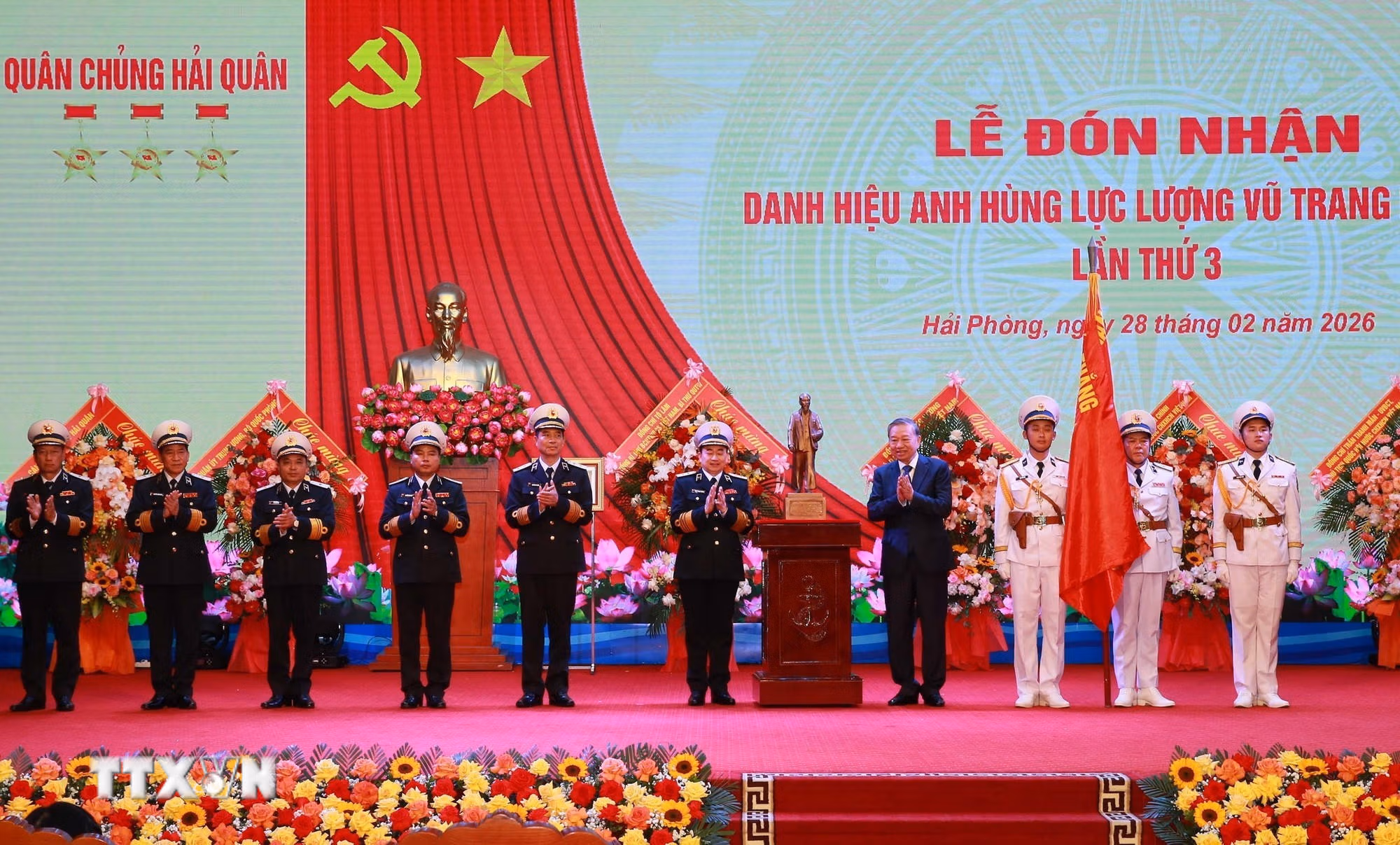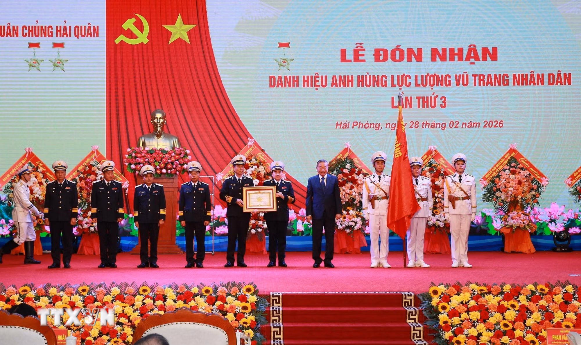 Sáng 28/2, tại thành phố Hải Phòng, Quân chủng Hải quân (Bộ Quốc phòng) tổ chức Lễ đón nhận danh hiệu Anh hùng Lực lượng vũ trang nhân dân (lần thứ 3). Tổng Bí thư Tô Lâm, Bí thư Quân ủy Trung ương dự và phát biểu chỉ đạo tại buổi Lễ. Báo Đại đoàn kết trân trọng giới thiệu Phát biểu của Tổng Bí thư Tô Lâm.