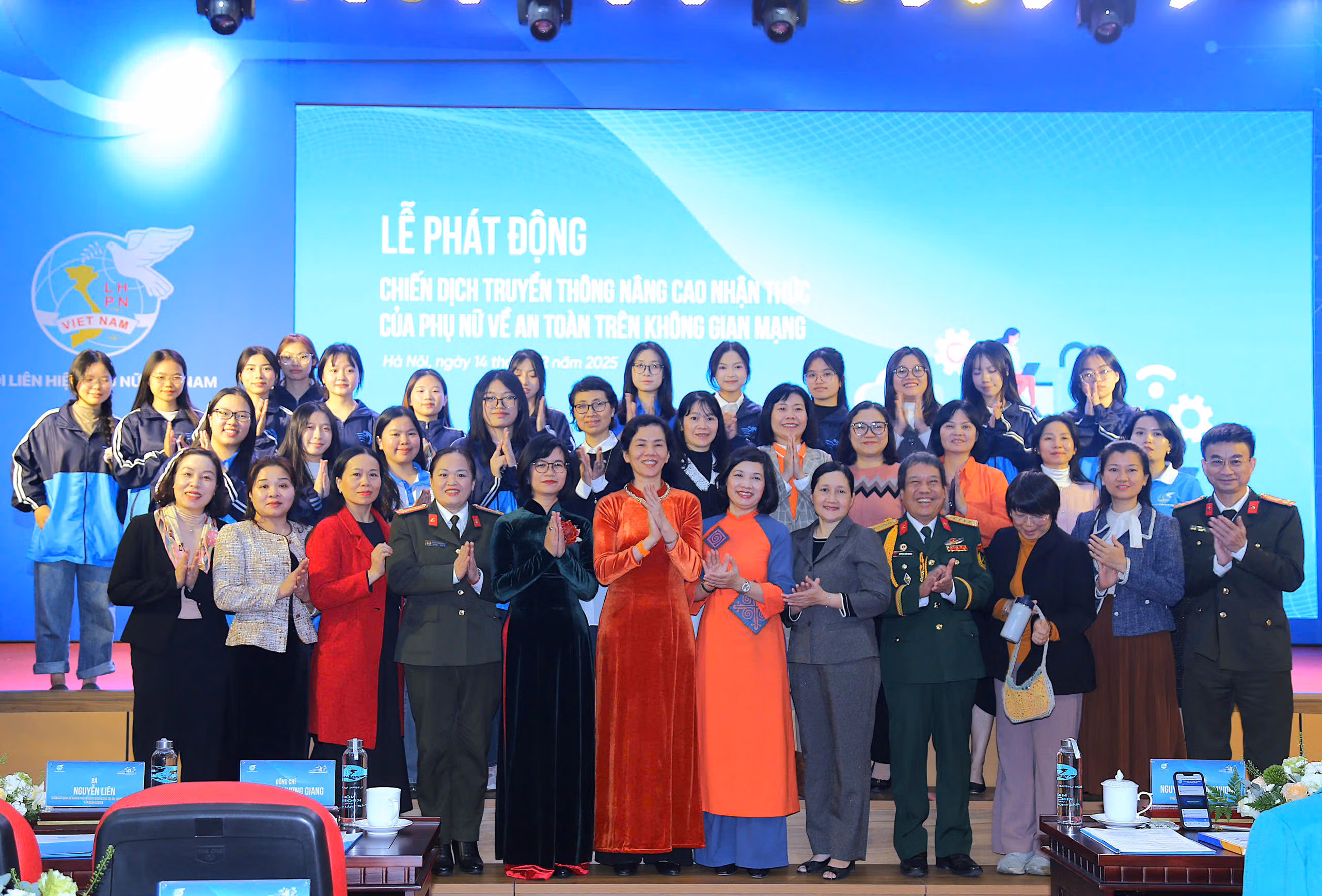 Sáng 14/12, tại Hà Nội, Trung ương Hội Liên hiệp Phụ nữ Việt Nam tổ chức Lễ phát động chiến dịch truyền thông nâng cao nhận thức của phụ nữ về an toàn trên không gian mạng với chủ đề “Kết nối 3 an - Làm chủ không gian số”.