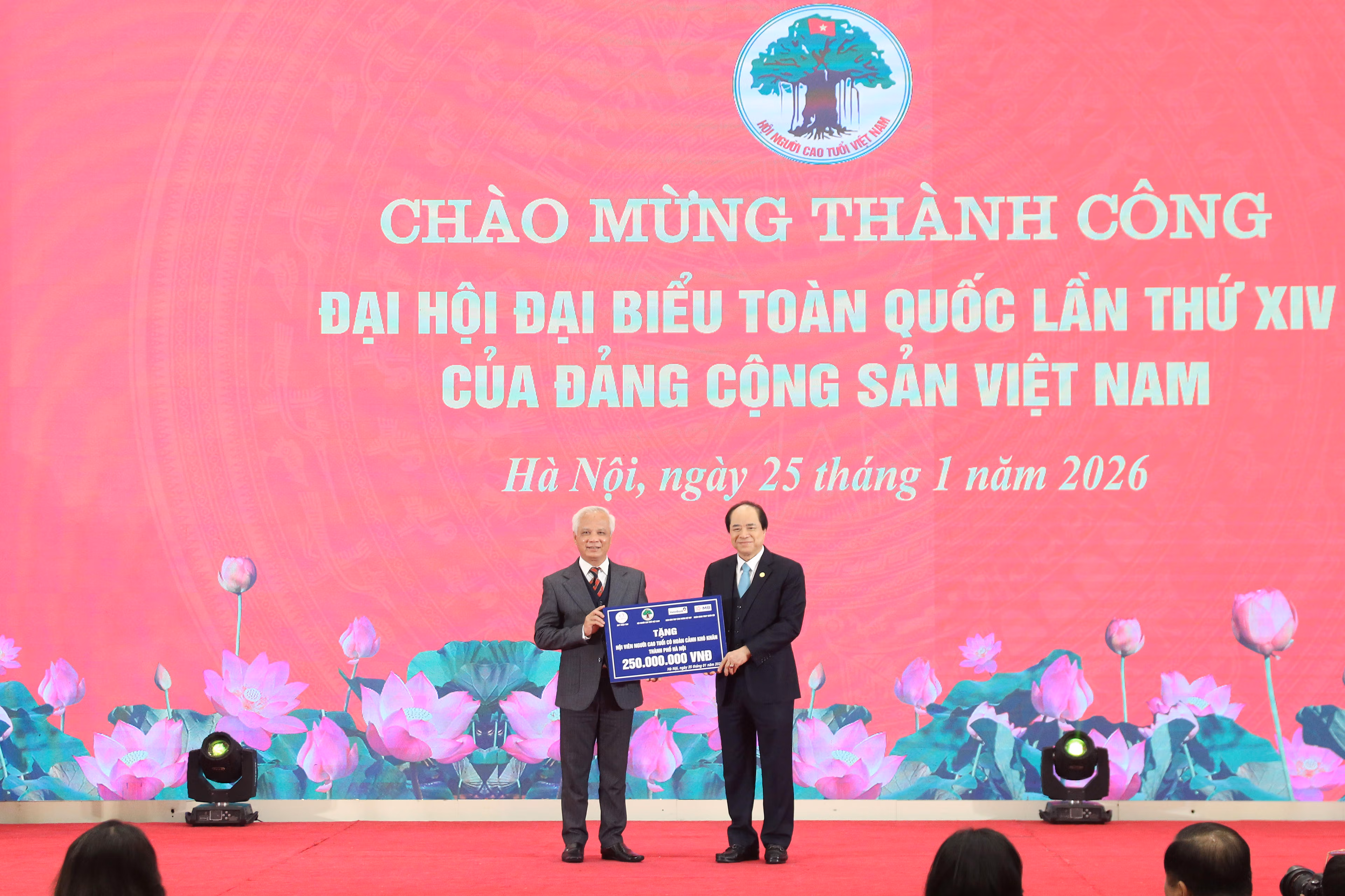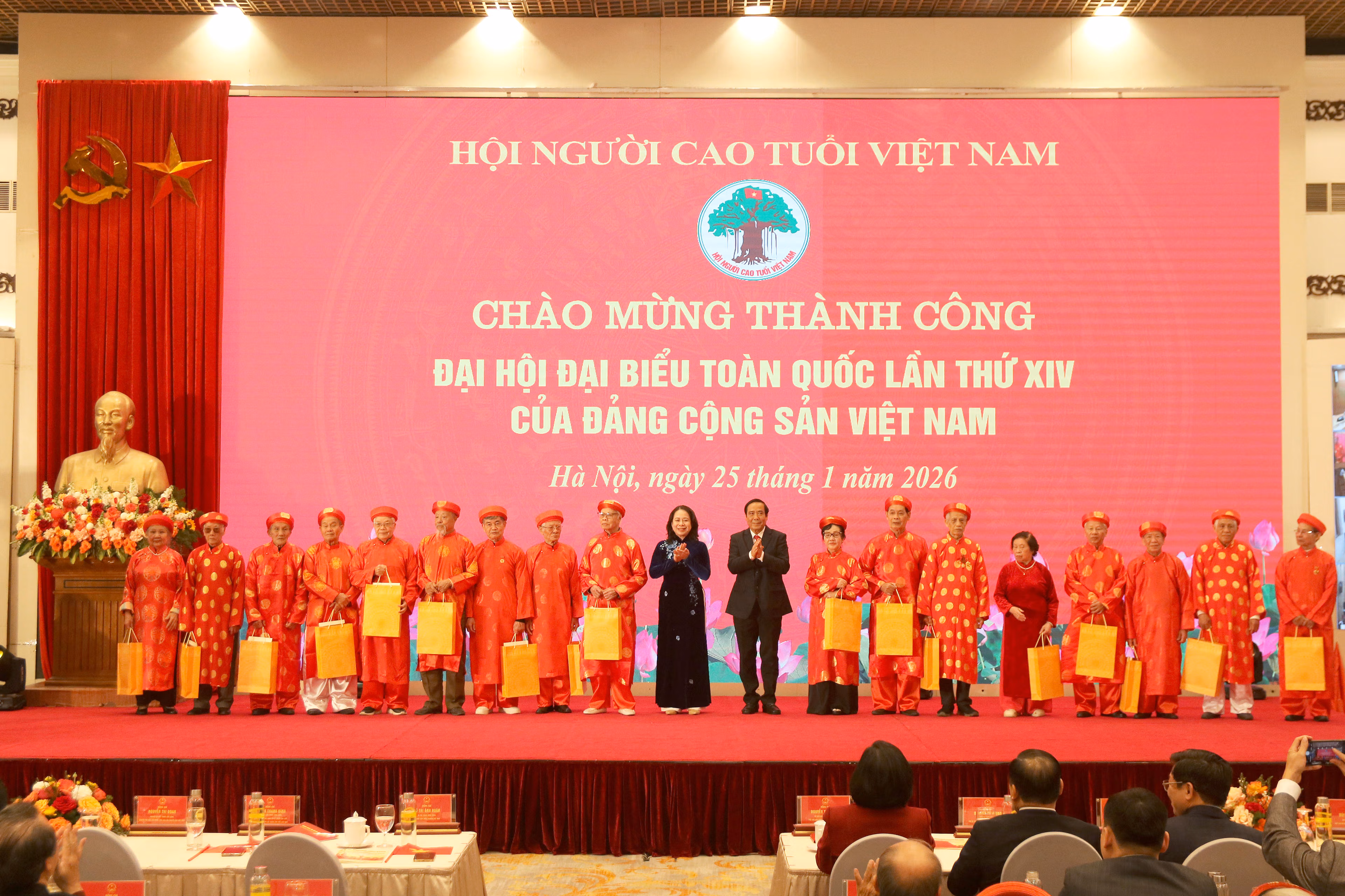 Tối 25/1, tại Hà Nội, Trung ương Hội Người cao tuổi Việt Nam tổ chức Chương trình nghệ thuật chào mừng thành công Đại hội đại biểu toàn quốc lần thứ XIV của Đảng với chủ đề “Hào khí Diên Hồng trong kỷ nguyên mới”; tặng quà người cao tuổi tiêu biểu trong phong trào thi đua yêu nước.