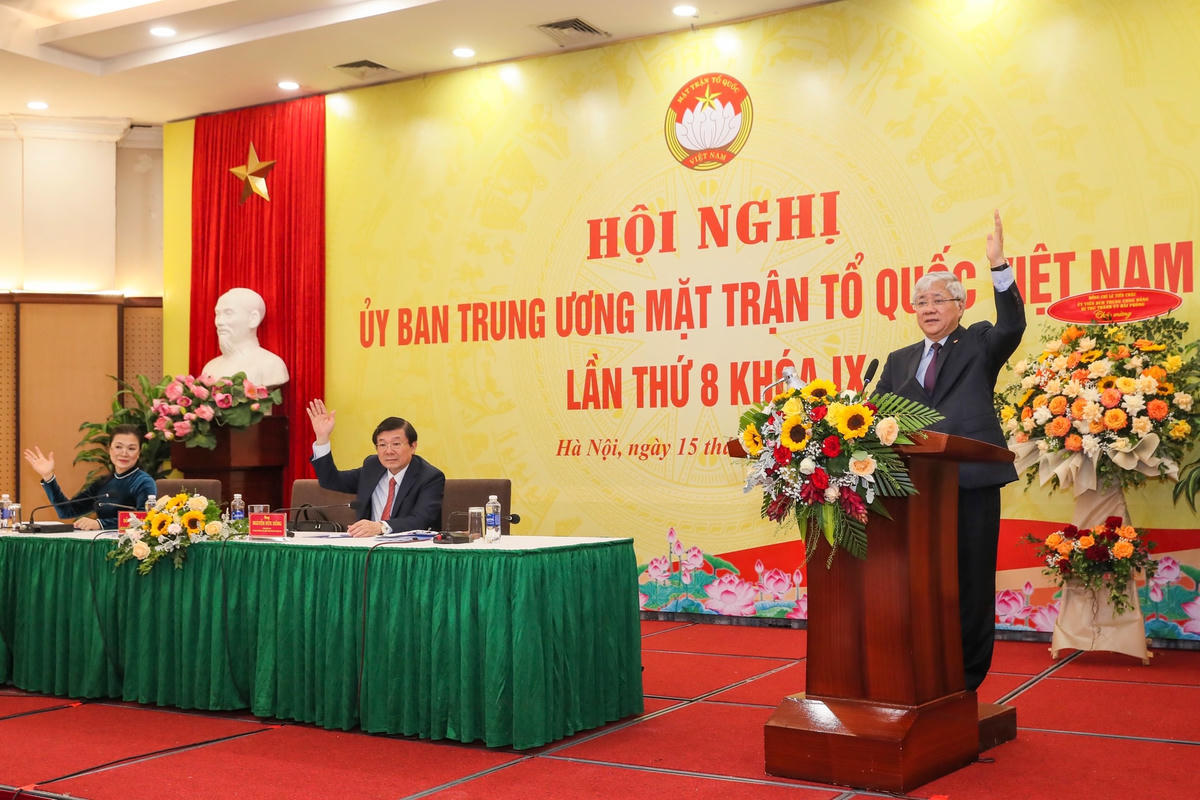 Phát biểu bế mạc Hội nghị, Chủ tịch Đỗ Văn Chiến nhấn mạnh, sau thời gian làm việc khẩn trương, nghiêm túc, chân thành, đồng thuận cao, Hội nghị lần thứ 8 khóa IX đã hoàn thành chương trình đề ra và thành công tốt đẹp. Hội nghị đã nhất trí 100% hiệp thương cử bà Nguyễn Thị Thu Hà giữ chức Phó Chủ tịch – Tổng Thư ký UBTƯ MTTQ Việt Nam và ông Hoàng Công Thủy giữ chức Phó Chủ tịch UBTƯ MTTQ Việt Nam. Hội nghị cũng đã lắng nghe và tiếp thu ý kiến chỉ đạo quan trọng của Ủy viên Bộ Chính trị, Thường trực Ban Bí thư Trung ương Đảng, Trưởng Ban Tổ chức Trung ương Trương Thị Mai. Đặc biệt, đại biểu tham dự Hội nghị đã tiếp thu nội dung quan trọng, cốt lõi trong cuốn sách “Kiên quyết, kiên trì đấu tranh phòng chống tham nhũng, tiêu cực, góp phần xây dựng Đảng và Nhà nước ta ngày càng trong sạch, vững mạnh” của Tổng Bí thư Nguyễn Phú Trọng.