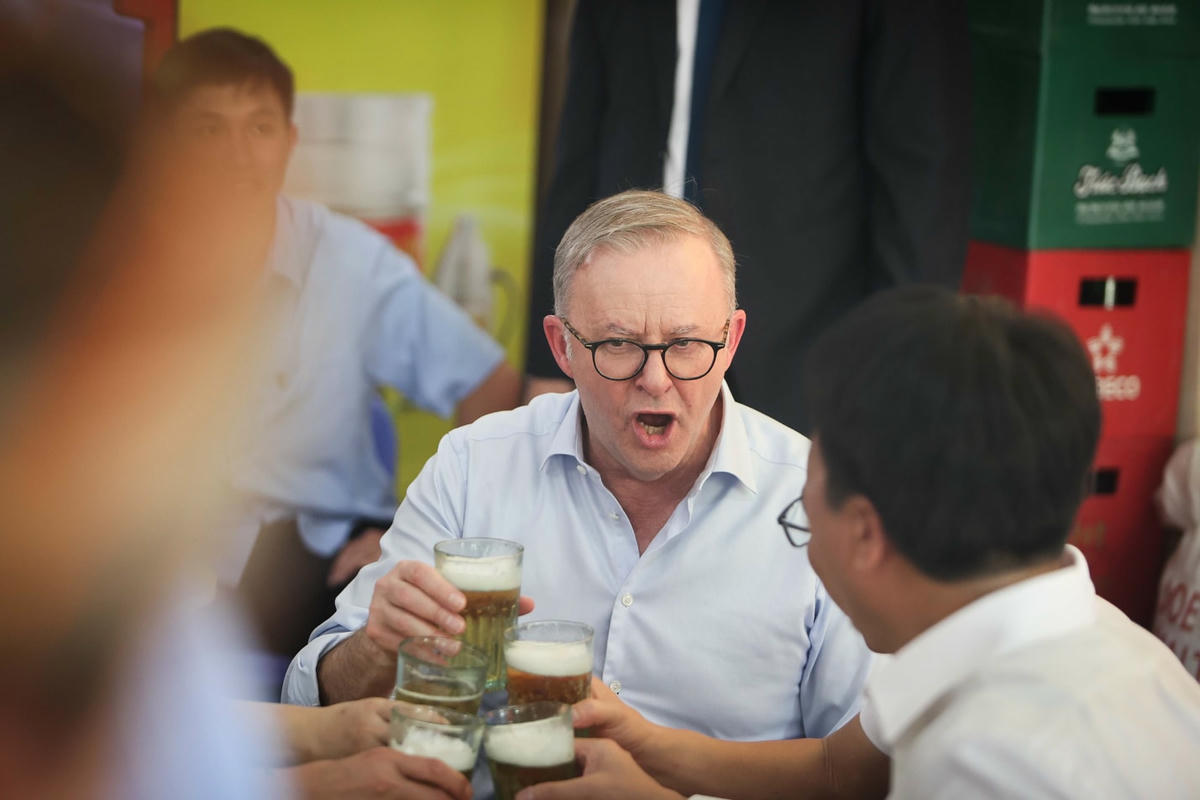 Ông Albanese tỏ ra thích thú với văn hóa uống bia hơi của người Hà Nội, ông đã uống 3 cốc bia hơi và khen "Bia rất ngon, rất tuyệt vời!". Thủ tướng Albanese rất vui trước tình cảm, sự hiếu khách của người dân Việt Nam và cùng hô "1,2,3 dô" với các thực khách khác cùng uống bia trong quán.