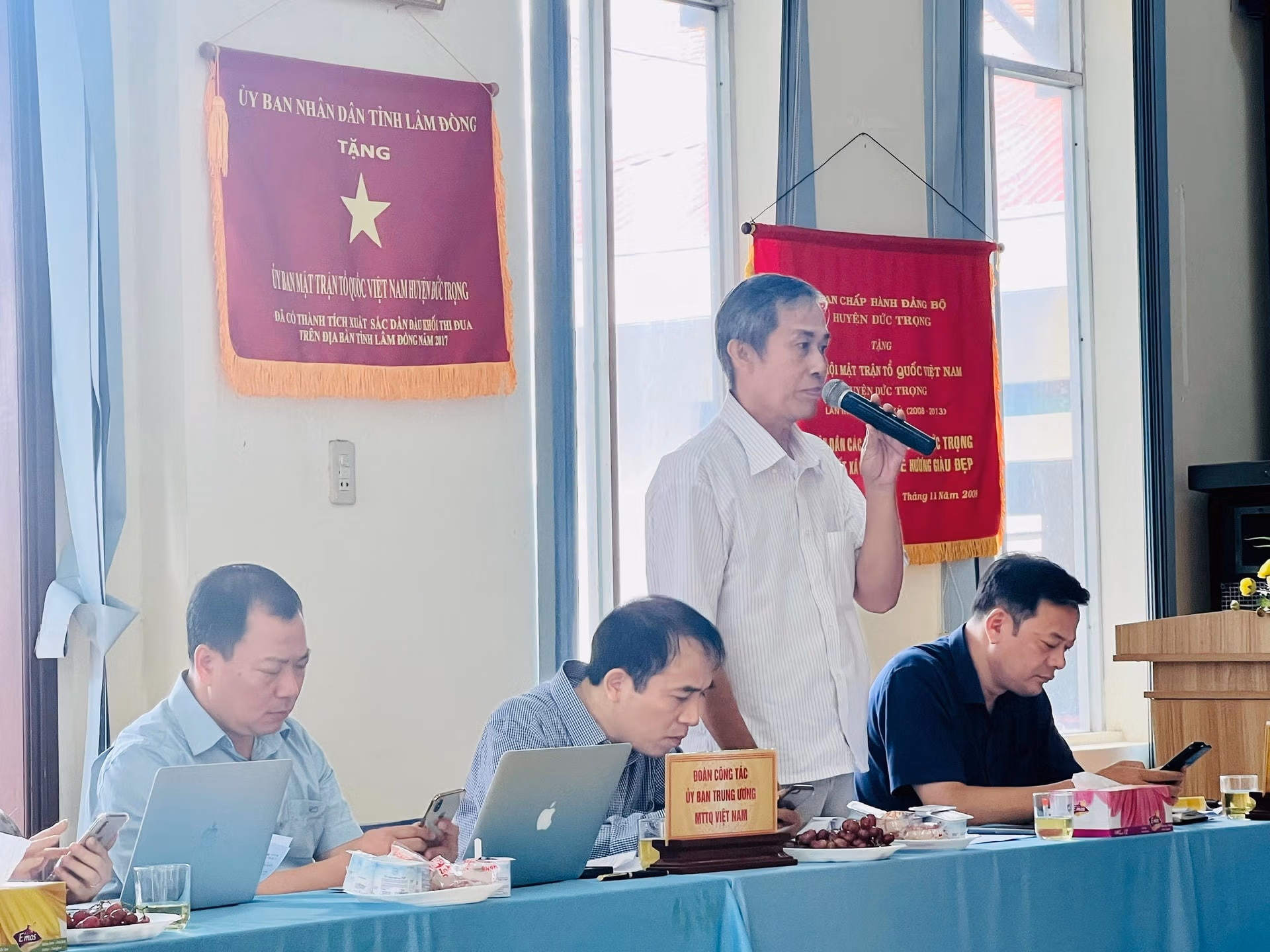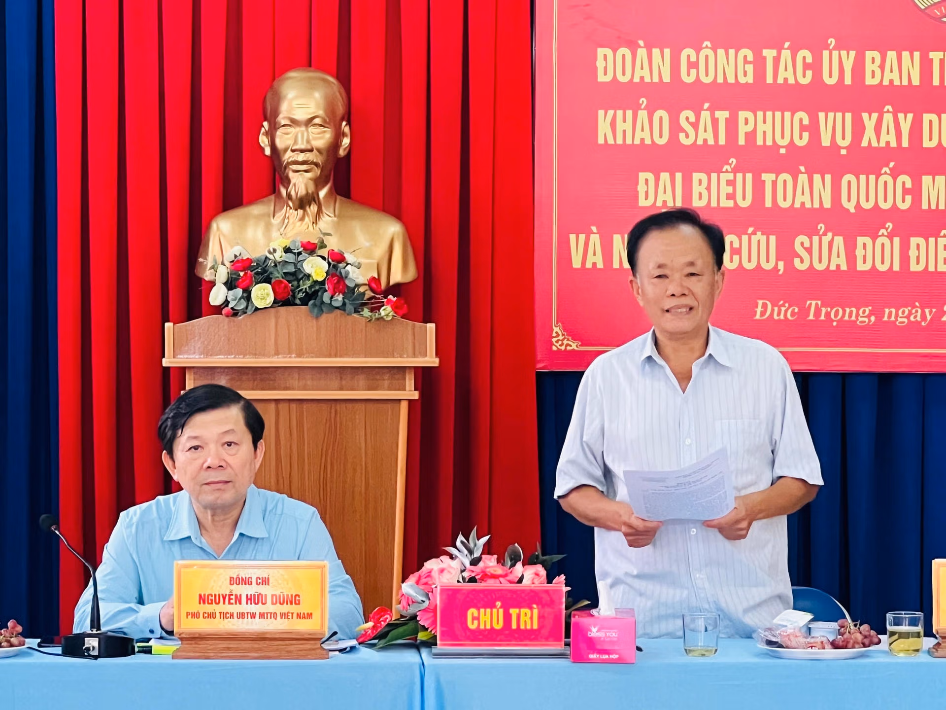 Kết luận cuộc làm việc, ông Nguyễn Hữu Dũng, Phó Chủ tịch UBTƯ MTTQ Việt Nam, Trưởng đoàn khảo sát đã ghi nhận các ý kiến đóng góp và nội dung, đề xuất của Ủy ban MTTQ Việt Nam huyện Đức Trọng. Qua đó, tổng hợp để nghiên cứu, sửa đổi Điều lệ MTTQ Việt Nam trình Đại hội đại biểu MTTQ Việt Nam lần thứ X, nhiệm kỳ 2024-2029.