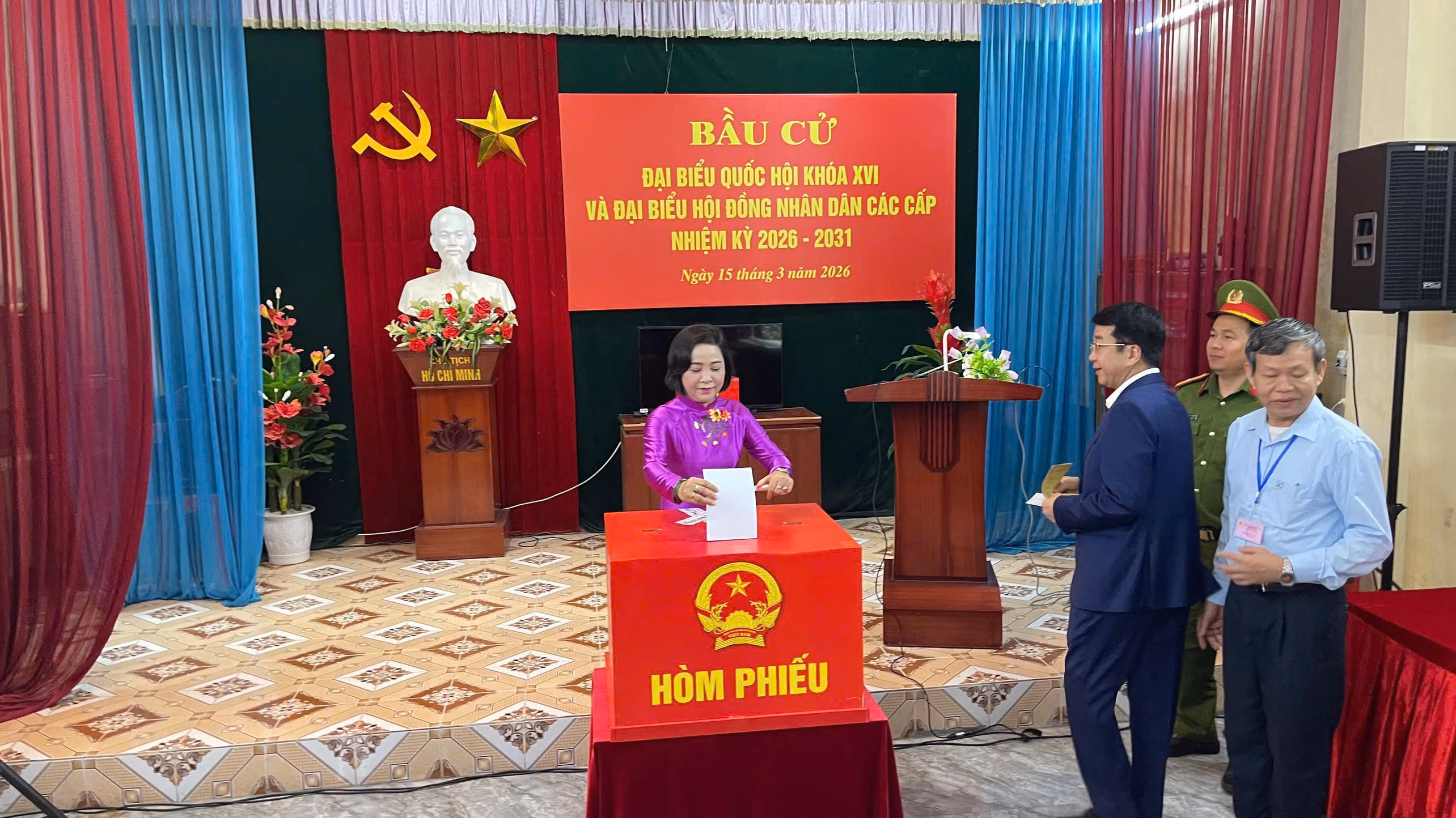Phó Chủ tịch Quốc hội Nguyễn Thị Thanh bỏ phiếu tại phường Hoa Lư, tỉnh Ninh Bình