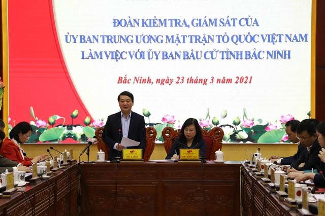 Chiều 23/3, Đoàn kiểm tra, giám sát công tác bầu cử của UBTƯ MTTQ Việt Nam do ông Hầu A Lềnh, Ủy viên Trung ương Đảng, Phó Chủ tịch - Tổng Thư ký UBTƯ MTTQ Việt Nam làm trưởng đoàn đã có buổi làm việc với Ủy ban Bầu cử tỉnh Bắc Ninh về công tác chuẩn bị bầu cử đại biểu Quốc hội khoá XV và bầu cử đại biểu HĐND các cấp nhiệm kỳ 2021-2026.