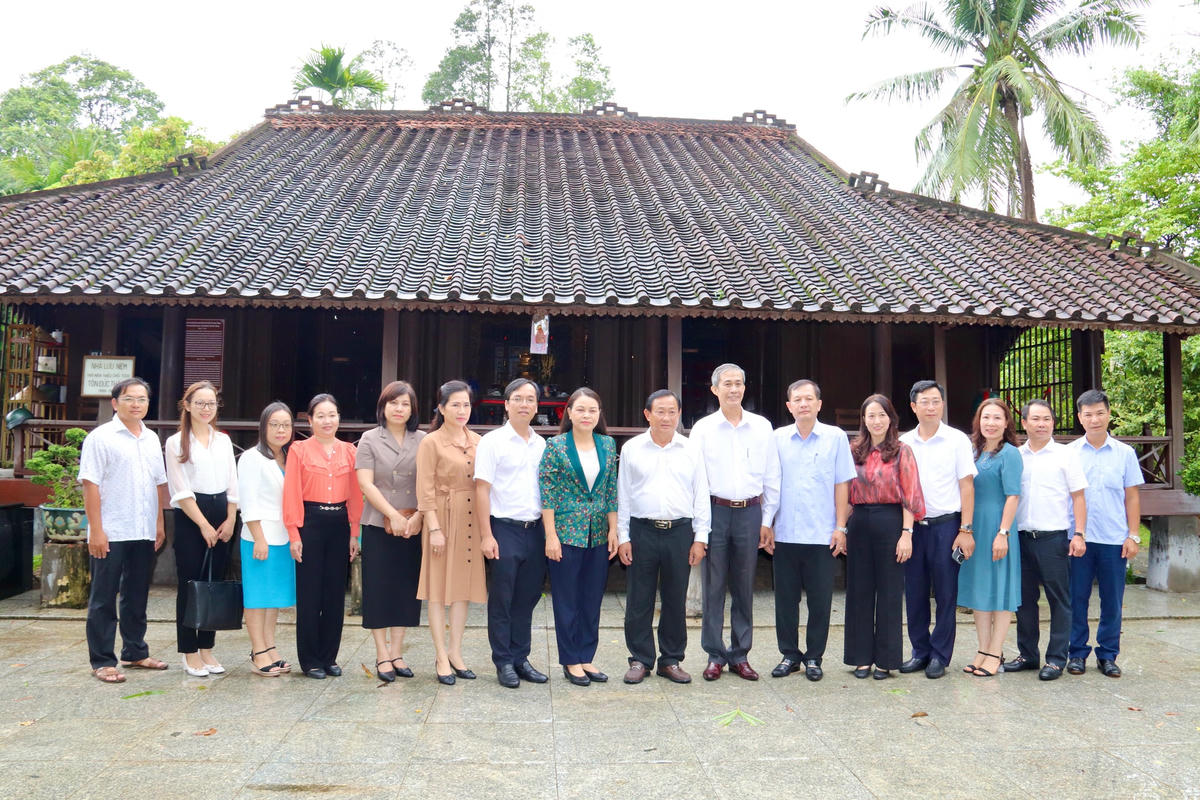 Phó Chủ tịch - Tổng Thư ký Nguyễn Thị Thu Hà cùng đoàn công tác đến dâng hương tại Đền thờ Chủ tịch Tôn Đức Thắng.Phó Chủ tịch - Tổng Thư ký Nguyễn Thị Thu Hà dâng hương tại Đền thờ Chủ tịch Tôn Đức Thắng.Các thành viên trong đoàn đã dành một phút mặc niệm để bày tỏ lòng thành kính và biết ơn vô hạn đối với công lao to lớn của Chủ tịch Tôn Đức Thắng, người chiến sĩ cộng sản trung kiên, nhà lãnh đạo gương mẫu, hết lòng vì nước vì dân, người con ưu tú của quê hương An Giang, của Nam Bộ thành đồng.Phó Chủ tịch - Tổng Thư ký Nguyễn Thị Thu Hà cùng đoàn lắng nghe thuyết minh giới thiệu về Đền thờ Chủ tịch Tôn Đức Thắng.Phó Chủ tịch - Tổng Thư ký Nguyễn Thị Thu Hà ghi sổ lưu niệm tại Đền thờ Chủ tịch Tôn Đức Thắng.Phó Chủ tịch - Tổng Thư ký Nguyễn Thị Thu Hà cùng đoàn chụp ảnh lưu niệm tại Đền thờ Chủ tịch Tôn Đức Thắng,Sau khi dâng hương tưởng niệm, Phó Chủ tịch - Tổng Thư ký Nguyễn Thị Thu Hà cùng các thành viên trong đoàn đã thăm nhà lưu niệm thời niên thiếu và tìm hiểu về cuộc đời, thân thế, sự nghiệp, quá trình hoạt động cách mạng của Chủ tịch Tôn Đức Thắng.Phó Chủ tịch - Tổng Thư ký Nguyễn Thị Thu Hà dâng hương tại nhà lưu niệm thời niên thiếu của Chủ tịch Tôn Đức Thắng.Phó Chủ tịch - Tổng Thư ký Nguyễn Thị Thu Hà cùng các thành viên trong đoàn chụp ảnh lưu niệm tại nhà lưu niệm thời niên thiếu của Chủ tịch Tôn Đức Thắng.