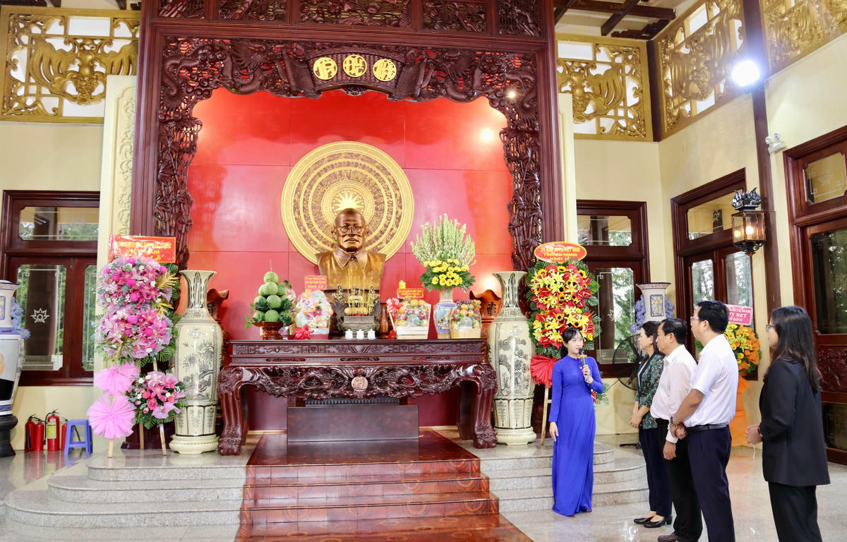 Phó Chủ tịch - Tổng Thư ký Nguyễn Thị Thu Hà dâng hương tưởng niệm tại Khu lưu niệm Chủ tịch Tôn Đức Thắng