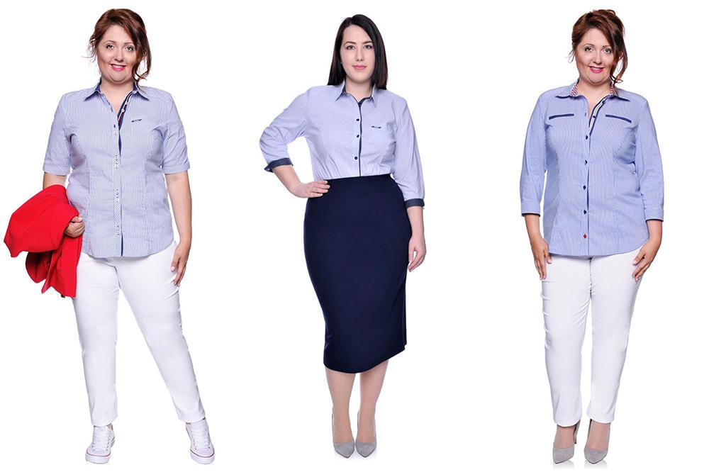 Chọn miếng vải gam mầu sẫm với những vạch sọc thẳng đứng là nguyên liệu phổ biến nhất và lý tưởng nhất. Áo sơ mi dạng mẫu này nhất thiết phải có trong bộ sưu tập tất cả người đẹp mập ú. Vạch sọc có thể mỏng, dày, song dứt khoát phải theo chiều dọc- vạch ngang là sát thủ lớn nhất của người đẹp size XL.