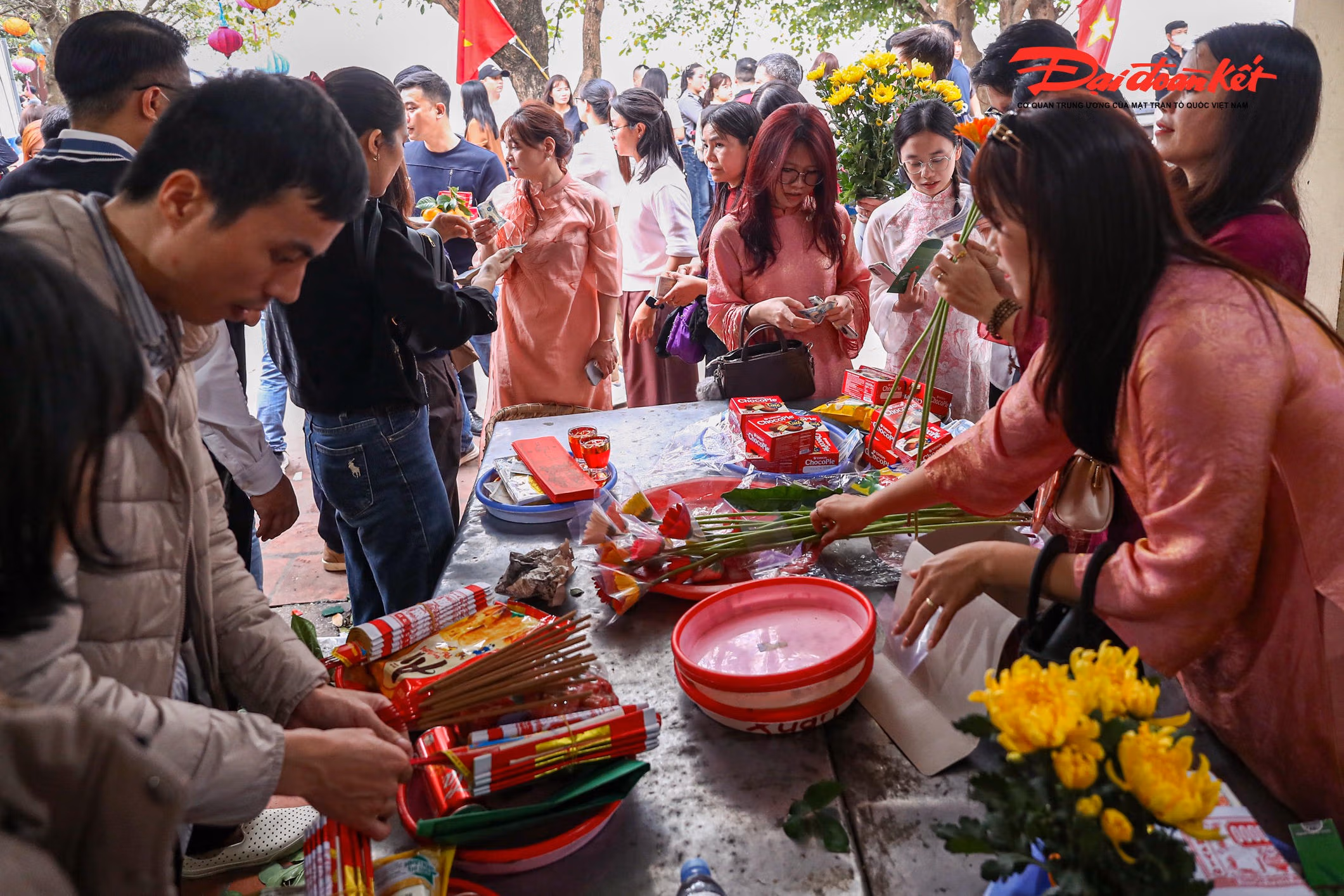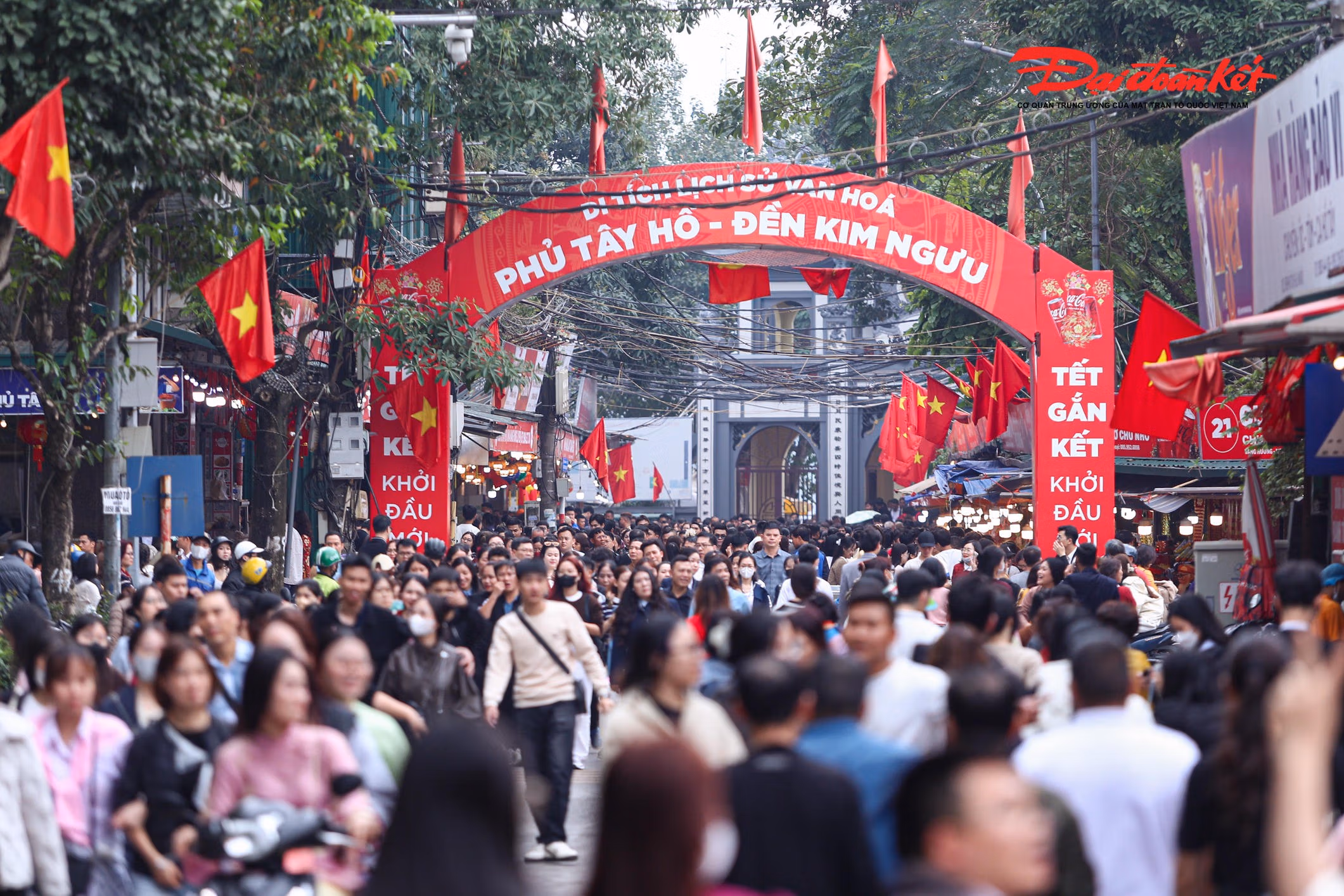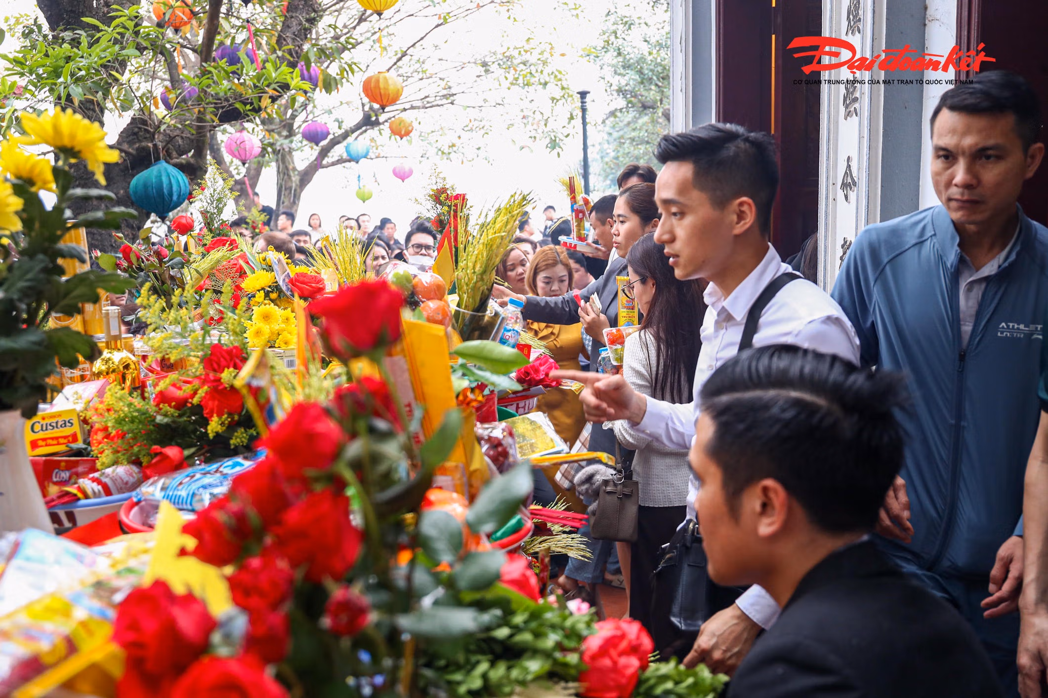 Từ trưa dòng người đã xếp hàng dài ngoài sân Phủ, tạo nên khung cảnh tấp nập kéo dài. Sự đông đúc ấy khiến Phủ Tây Hồ trở nên rộn ràng, nhộn nhịp hơn thường ngày.