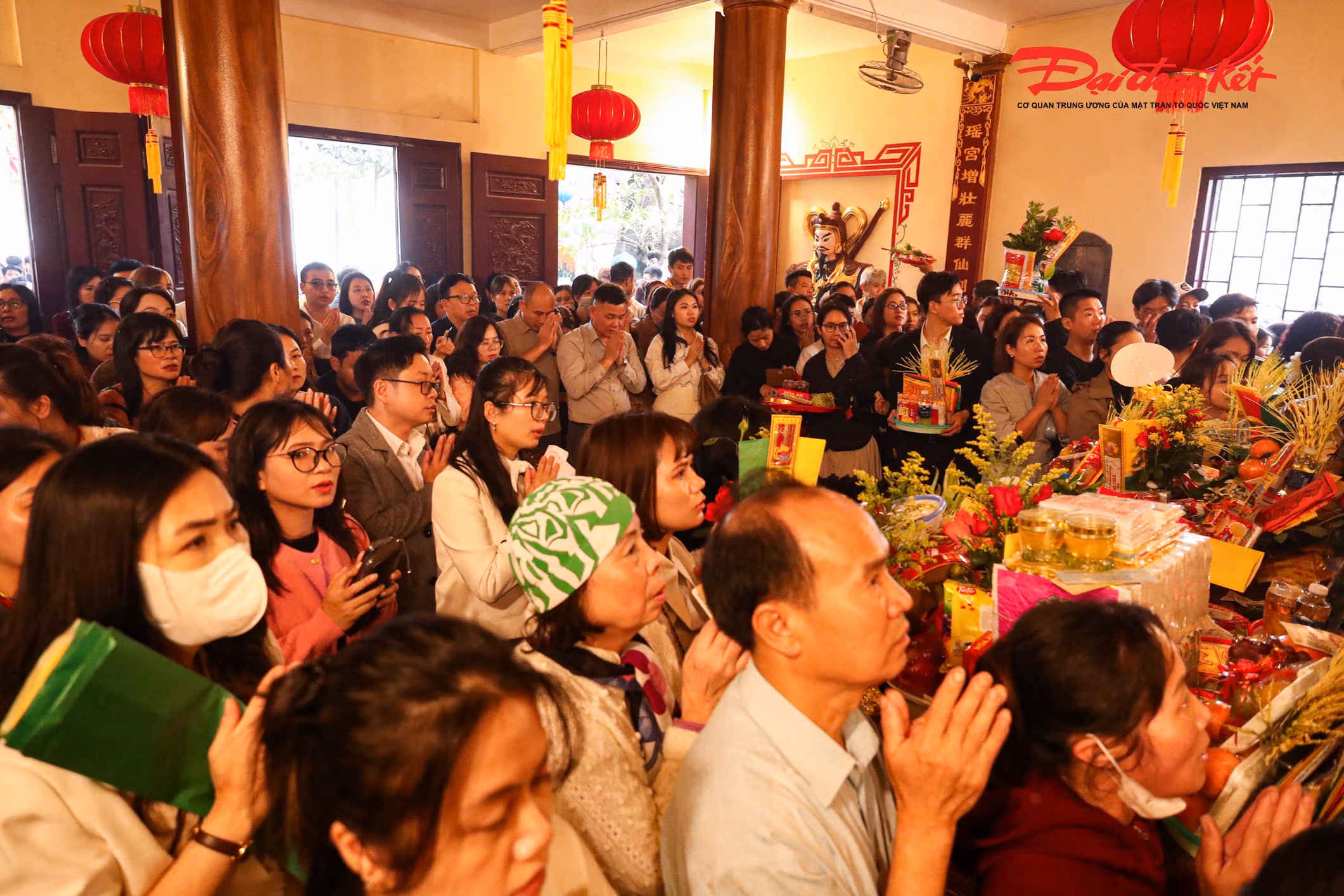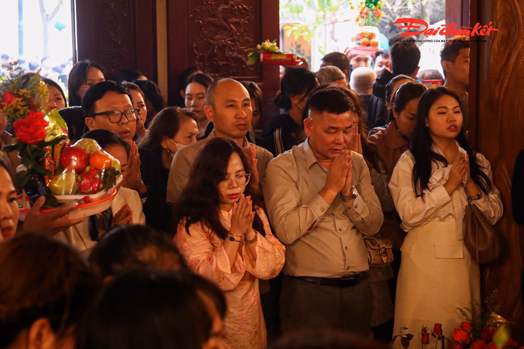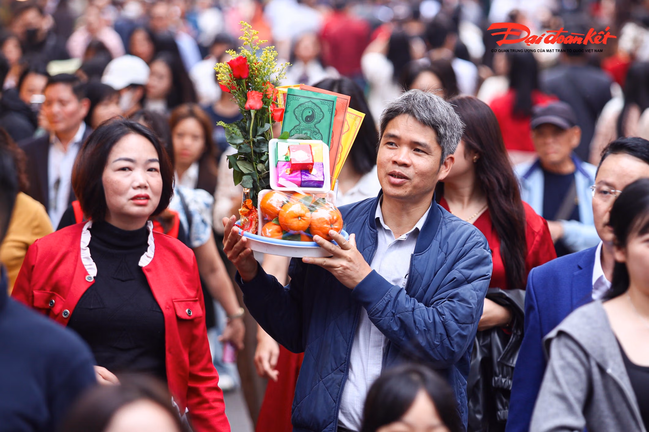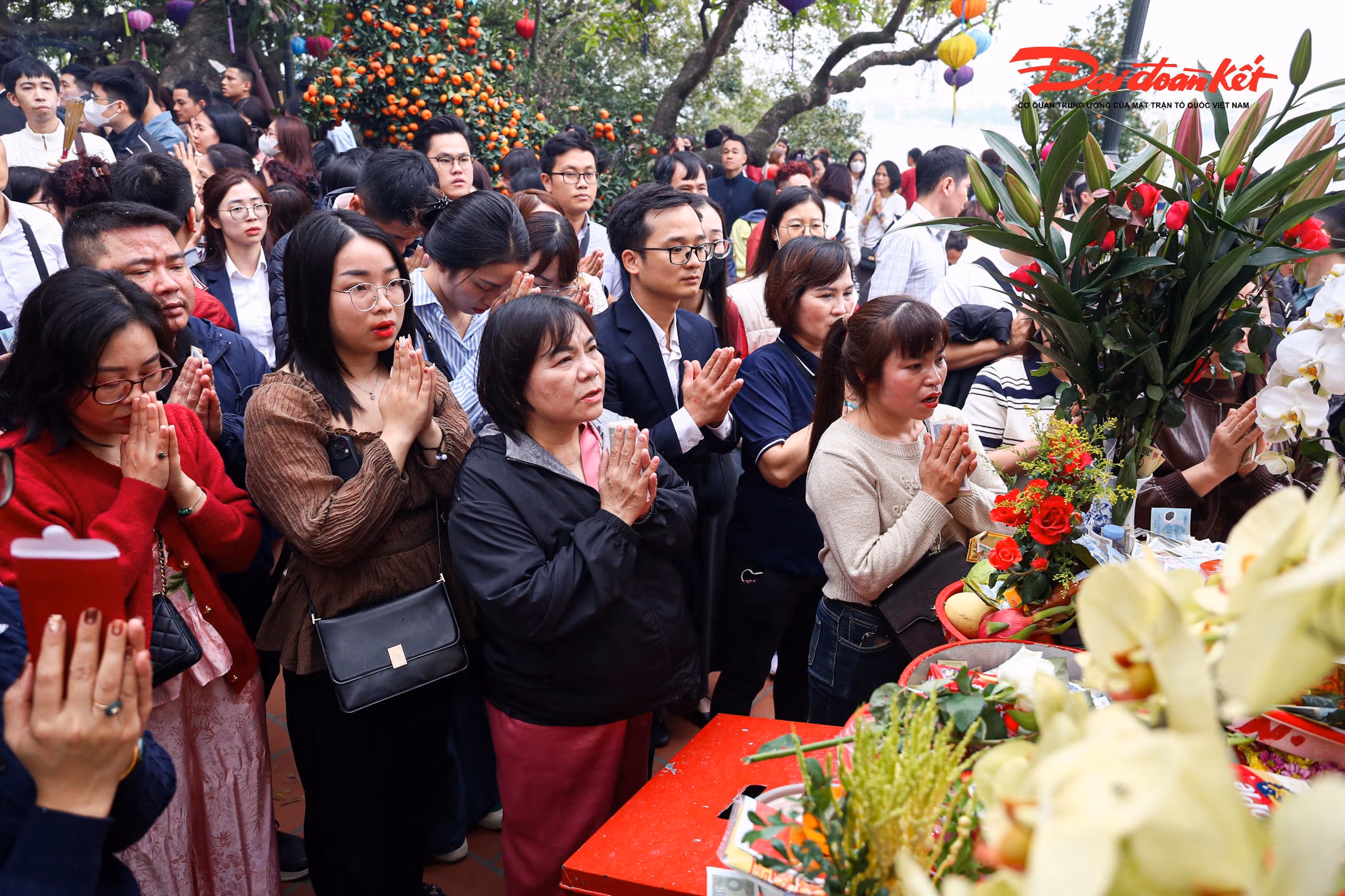 Từ trưa dòng người đã xếp hàng dài ngoài sân Phủ, tạo nên khung cảnh tấp nập kéo dài. Sự đông đúc ấy khiến Phủ Tây Hồ trở nên rộn ràng, nhộn nhịp hơn thường ngày.