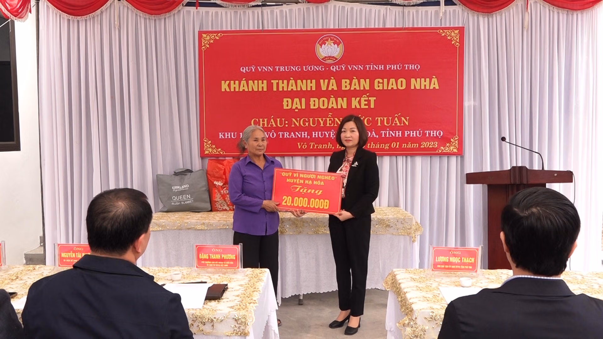 Tới dự có ông Đặng Thanh Phương, Phó Trưởng ban Đối ngoại và Kiều bào UBTƯ MTTQ Việt Nam; lãnh đạo Uỷ ban MTTQ Việt Nam tỉnh Phú thọ; đại diện lãnh đạo MTTQ huyện Hạ Hòa; lãnh đạo chính quyền xã Vô Tranh và đại diện nhà tài trợ.