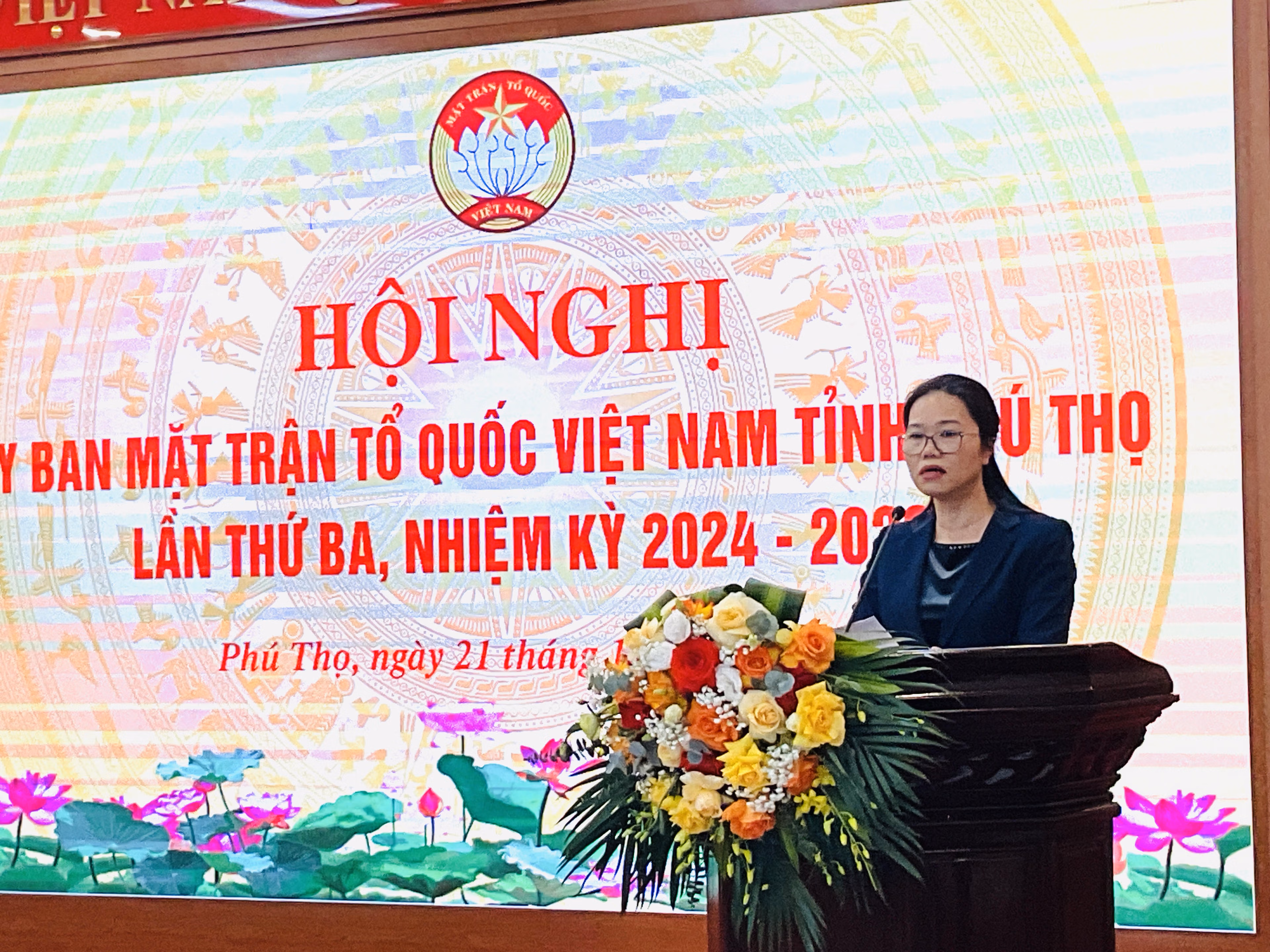 Hội nghị cũng đã thông qua báo cáo một số nội dung tổ chức Đại hội đại biểu MTTQ Việt Nam tỉnh lần thứ I, nhiệm kỳ 2025 - 2030 thảo luận và thống nhất một số nội dung tổ chức Đại hội đại biểu MTTQ Việt Nam tỉnh Phú Thọ lần thứ I, nhiệm kỳ 2025 - 2030.