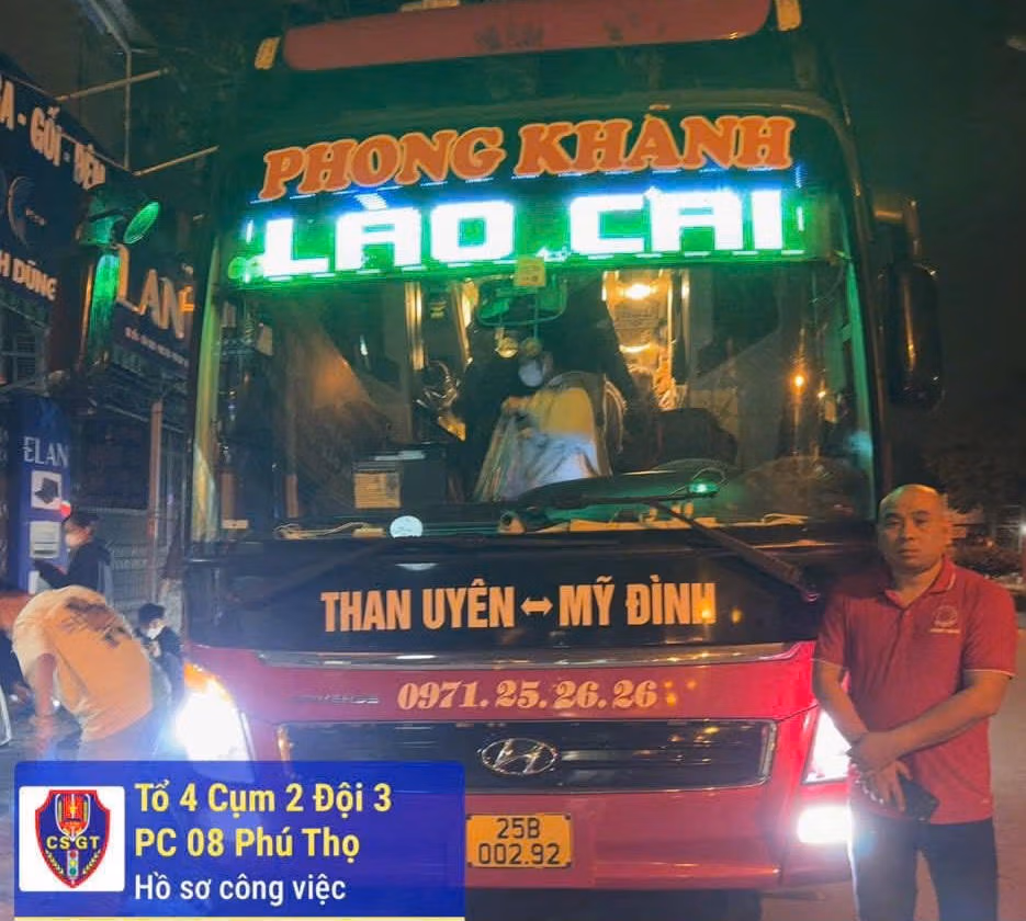 Tiếp đến, khoảng 00h30’ ngày 14/2/2026: Dừng kiểm tra xe khách biển số 24F-xxx.08 do Khổng Như H. (SN 1988, trú tại tỉnh Tuyên Quang) điều khiển, vi phạm: Chở quá số người (66/36 người); Thiết bị giám sát hành trình không hoạt động.