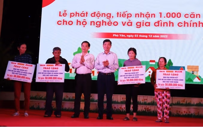 Đồng thời hoàn chỉnh các hồ sơ, để xây dựng tiếp 80 nhà căn Đại đoàn kết nhà từ phong trào “Hỗ trợ xây dựng 1.000 căn nhà ở cho hộ nghèo, hộ gia đình chính sách” trên địa bàn tỉnh Phú Yên (đợt 2), bao gồm xã: Xuân Sơn Nam 6 nhà, Xuân Sơn Bắc 1 nhà, thị trấn La Hai 5 nhà, Xuân Long 3 nhà, Xuân Lãnh 15 nhà, Đa Lộc 9 nhà, Xuân Quang 1; 24 nhà, Xuân Quang 2; 4 nhà, Xuân Quang 3; 4 nhà, Xuân Phước 4 nhà và Phú Mỡ 5 nhà.