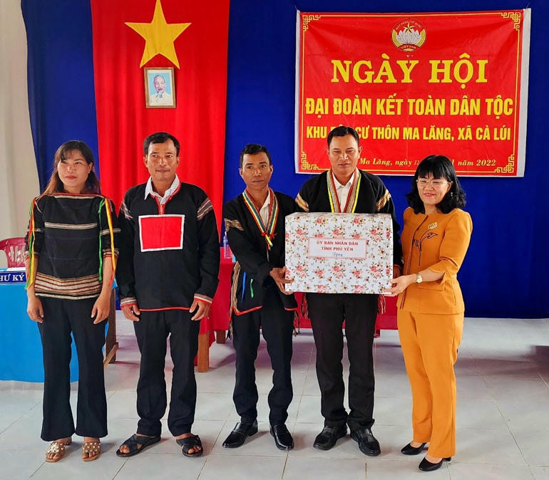Nhân dịp này, Phó Chủ tịch UBND tỉnh Phú Yên, tặng quà cho khu dân cư thôn Ma Lăng xã Cà Lúi, huyện Sơn Hòa và 20 suất quà cho các già làng, hộ gia đình tiêu biểu của thôn Ma Lăng; UBMT tỉnh Phú Yên tặng 5 suất quà cho 5 hộ nghèo tại địa phương, mỗi suất trị giá 500.000 đồng; Ủy ban MTTQ tỉnh Phú Yên tặng bằng khen cho ban công tác mặt trận thôn Ma Lăng và 1 cá nhân vì có thành tích vận động tham gia CVĐ; Huyện ủy Sơn Hòa cũng tặng quà cho khu dân cư .