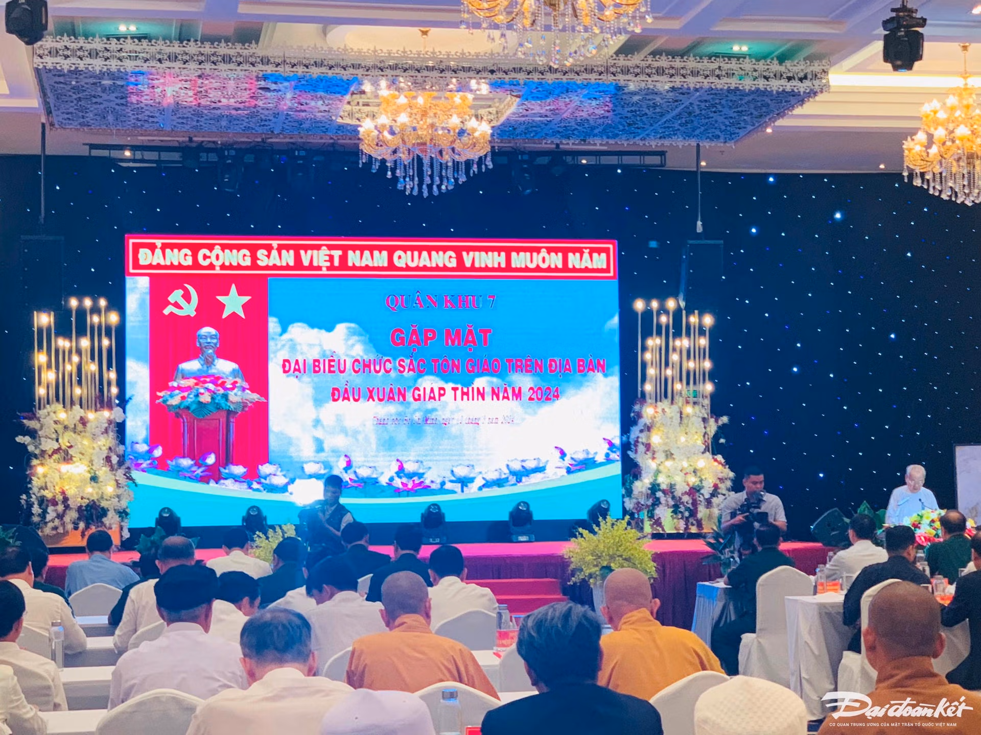 Chủ trì buổi gặp mặt có Trung tướng Trần Hoài Trung, Bí thư Đảng ủy, Chính ủy Quân khu 7. Đến tham dự buổi gặp mặt còn có Trung tướng Nguyễn Trường Thắng, Tư lệnh Quân khu 7; ông Vũ Hoài Bắc, Trưởng ban Tôn giáo Chính phủ; đại diện Ban Dân vận Trung ương, Ban Dân vận các Tỉnh ủy, Thành uỷ và khoảng hơn 100 đại biểu chức sắc tôn giáo trên địa bàn 9 tỉnh, thành thuộc Quân khu 7.