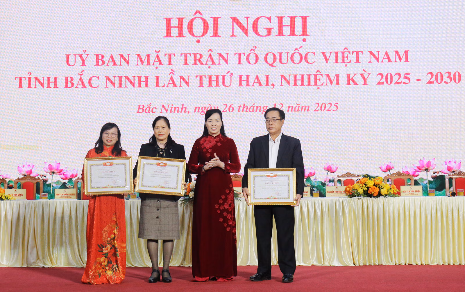 Nhân dịp này, nhiều tập thể, cá nhân được khen thưởng do có thành tích xuất sắc trong công tác mặt trận năm 2025.