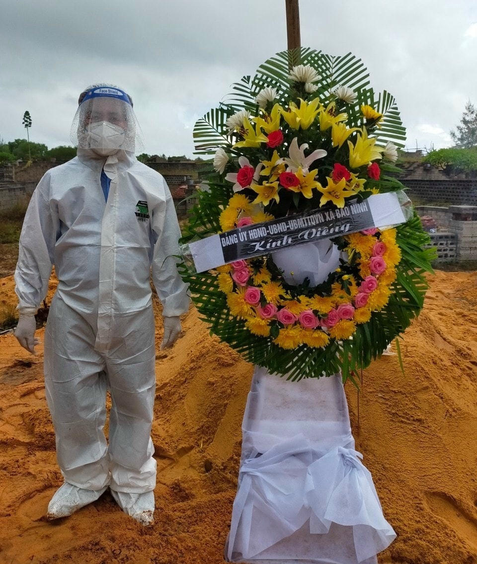 Được biết, để hỗ trợ chôn cất người quá cố do mắc Covid-19, Trung tâm Y tế thành phố Đồng Hới đã khử khuẩn và chở từ nhà xác ra nghĩa trang. Trung tâm công viên cây xanh Đồng Hới hỗ trợ cẩu hòm để an táng.