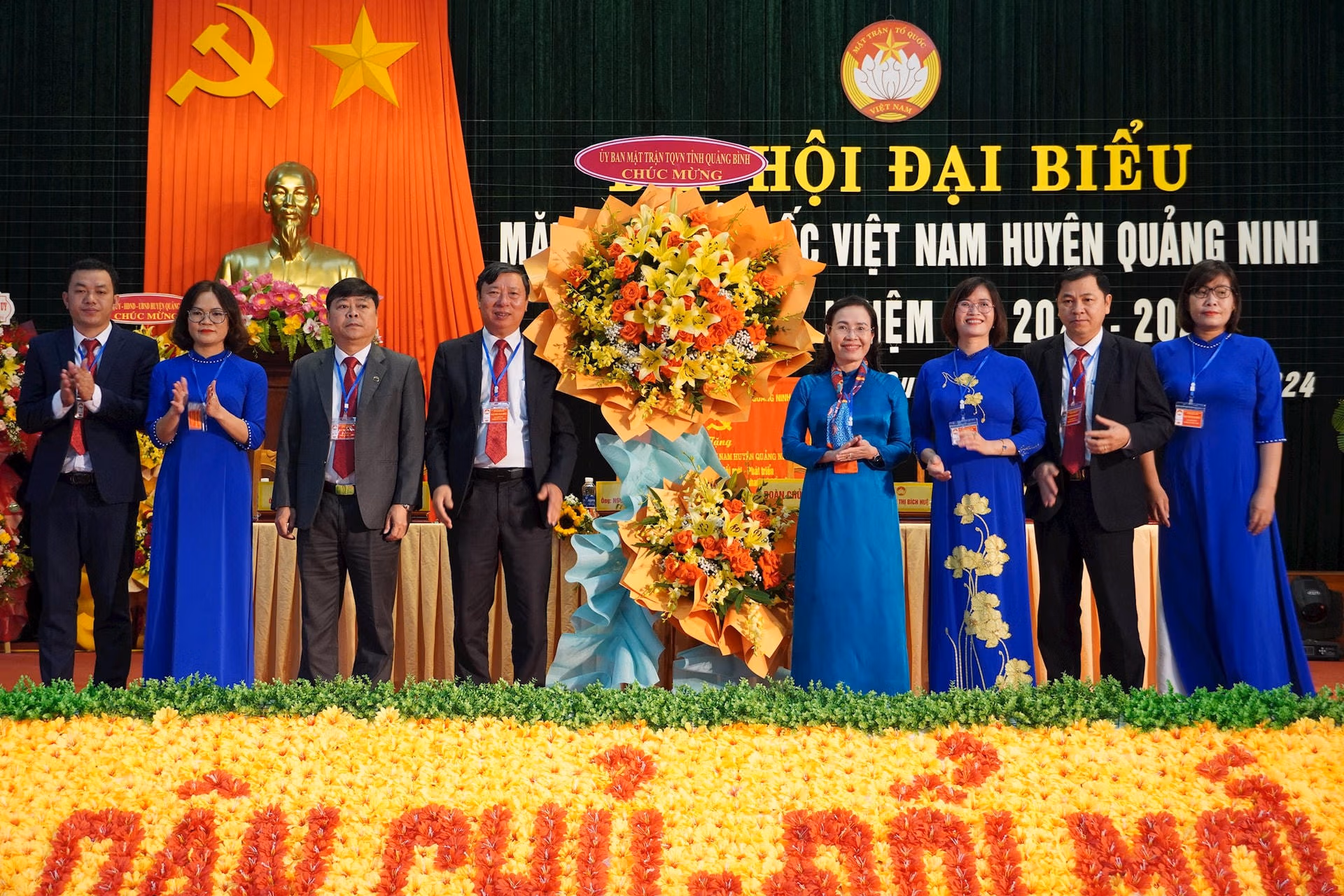 Bà Phạm Thị Hân, Chủ tịch Ủy ban MTTQ tỉnh Quảng Bình; ông Trần Quốc Tuấn, Bí thư Huyện uỷ Quảng Ninh; đại diện lãnh đạo các địa phương, ban, ngành, Mặt trận của các huyện, thị, thành phố; cùng 162 đại biểu đại diện cho các tầng lớp nhân dân trên địa bàn huyện Quảng Ninh dự đại hội.