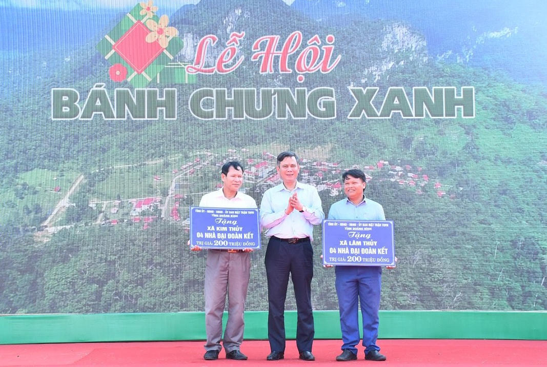 Nhân dịp này, lãnh đạo tỉnh Quảng Bình và các nhà hảo tâm đã trao tặng 8 ngôi nhà Đại đoàn kết (tổng trị giá gần 400 triệu đồng) cho các gia đình chính sách có hoàn cảnh khó khăn trên địa bàn 2 xã Kim Thủy và Lâm Thủy; 50 suất quà (trị giá 1 triệu đồng/suất) cho hộ nghèo tại xã Kim Thủy; 20 suất quà (trị giá 500 ngàn đồng/suất) cho các em học sinh trong Chương trình “Nâng bước em đến trường" và "Con nuôi đồn Biên phòng"; 1 bộ âm thanh loa máy trị giá 15 triệu đồng cho bản Trung Đoàn, xã Kim Thủy và Trường TH và THCS số 2 Kim Thủy.