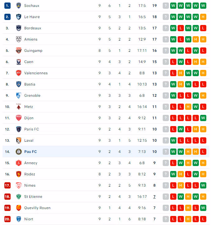 Với kết quả này, Pau FC đã vươn lên vị trí thứ 14 trên bảng xếp hạng với 10 điểm. Họ đã tạm thời thoát khỏi nhóm cầm đèn đỏ.