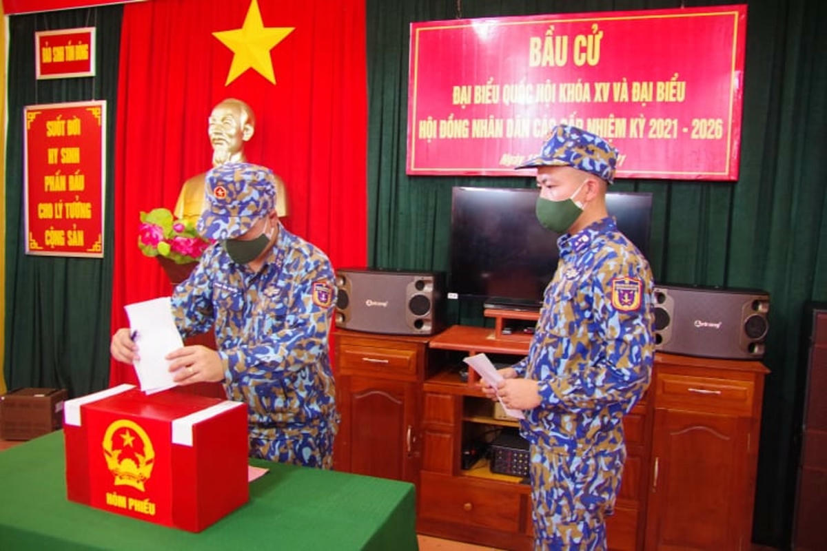 Chiều 17/5, Bộ Tư lệnh Vùng Cảnh sát biển 2, đóng tại xã Tam Quang, huyện Núi Thành, tỉnh Quảng Nam cho biết, cán bộ, chiến sĩ tàu Cảnh sát biển 8002 đã tham gia bầu cử sớm.