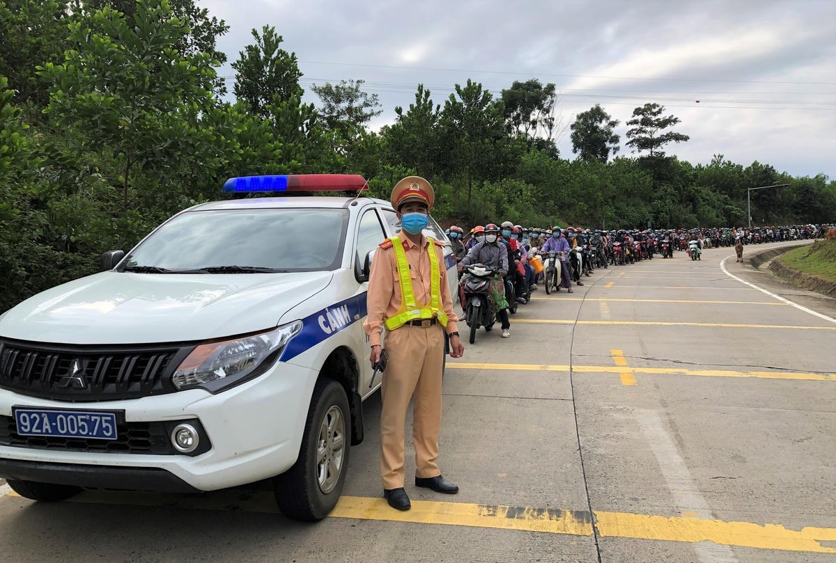 Theo Trung tá Sơn, khi nắm được thông tin về số lượng người dân di chuyển bằng xe máy từ các tỉnh phía Nam về quê sẻ đi qua địa bàn tỉnh Quảng Nam, quãng đường mà bà con đi qua rất dài, đường núi nguy hiểm nên đơn vị cùng lực lượng Cảnh sát cơ động 113, Công an tỉnh và Công an huyện Phước Sơn đã bố trí thức ăn, nước uống sẵn sàng hỗ trợ cho bà con.
