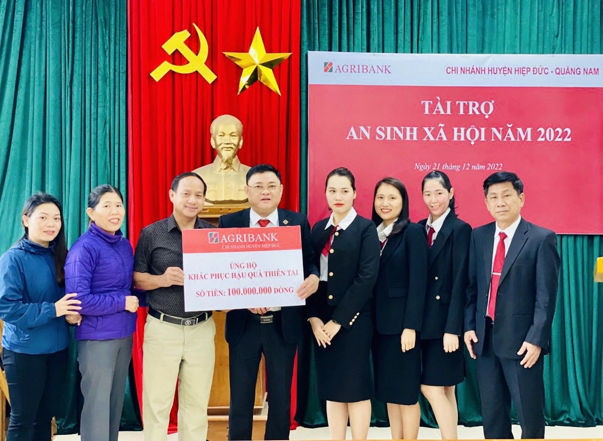 Chiều 27/12, Ngân hàng Nông nghiệp và Phát triển nông thôn Việt Nam (Agribank) - chi nhánh (CN) Quảng Nam cho biết, đã tổ chức trao tặng 1 tỷ đồng đến các hộ gia đình bị ảnh hưởng nặng nề sau đợt bão, lũ trên địa bàn tỉnh Quảng Nam trong năm 2022.
