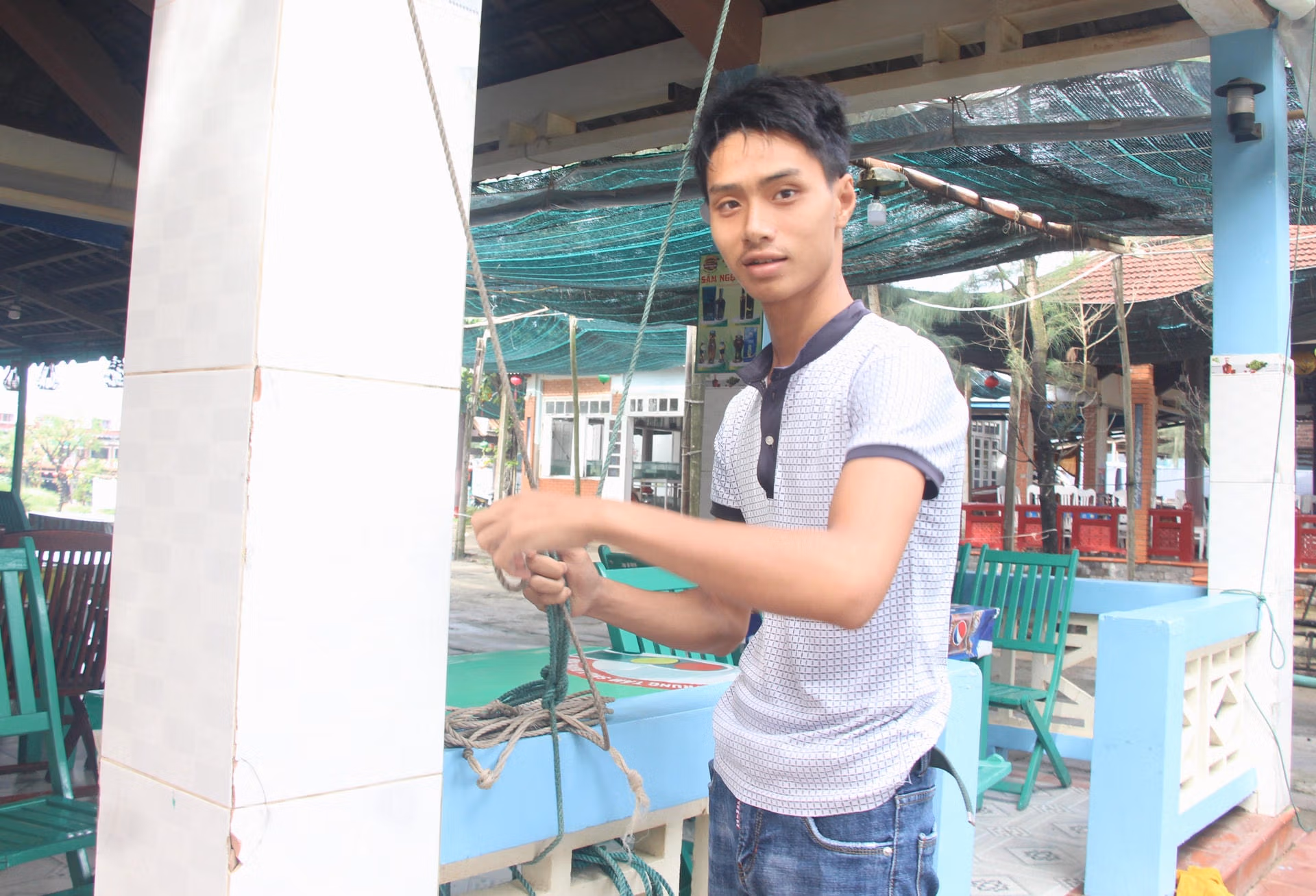 Anh Nguyễn Huy Hoàng, trú khối phố Phước Tân, phường Cửa Đại nói: “Sau khi nghe thông tin cơn bão số 4 có sức gió mạnh nên tôi cùng các nhân viên khẩn trương xúc cát chằng chống nhà hàng và cột dây thừng chòi tranh để khi bão đổ bộ đất liền thì gió khỏi thổi bay, đồng thời giảm thiệt hại về tài sản cho nhà hàng”.
