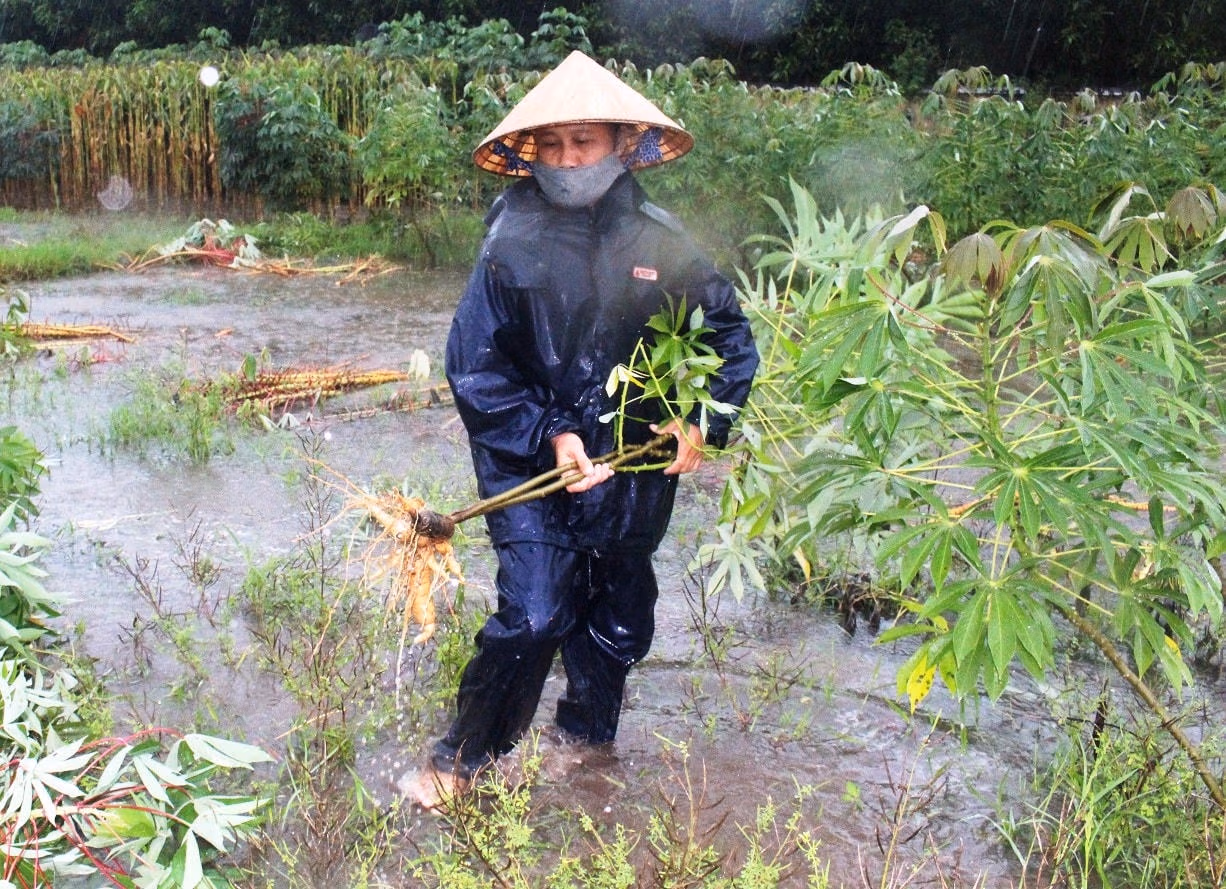 Cũng như bà Nguyễn Thị Hòe, trú xã Tam An cho hay, diện tích sắn bị ngập, gia đình bà thu hoạch chạy bão cũng không kịp, nên ngay sau khi nước rút tiếp tục thu hoạch, nếu không sắn ngã nằm trong đất nhão sẽ thối hư hỏng hết.