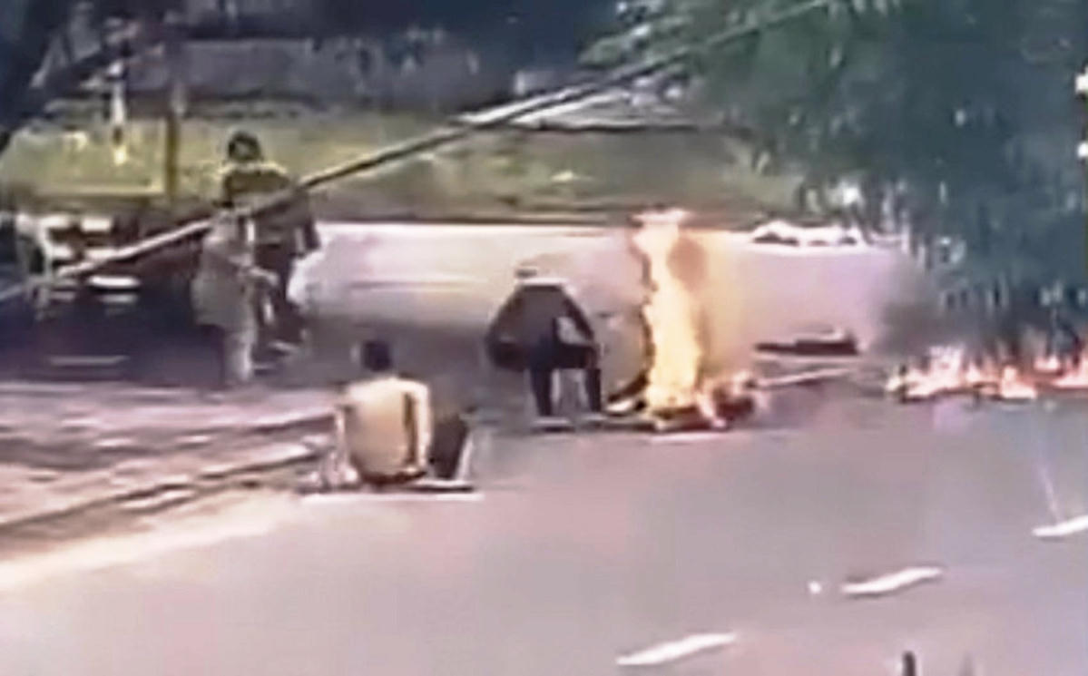 Theo đó, nội dung clip ghi lại khoảng 2 đến 3 người xông vào đánh một người phụ nữ mặc áo đen (chưa rõ danh tính). Sau đó, một trong nhóm châm lửa đốt nạn nhân ngay trên đường. Ngay sau đó, nhiều người ở gần xông vào cố gắng dập tắt ngọn lửa trên người nạn nhân. Khoảng 20 giây sau, ngọn lửa được dập tắt, nạn nhân nằm bất động dưới đường.