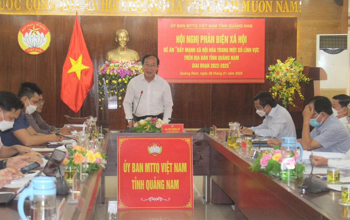 Chiều 6/1, Ủy ban MTTQ Việt Nam tỉnh Quảng Nam tổ chức hội nghị phản biện xã hội Đề án ‘Đẩy mạnh xã hội hóa trong một số lĩnh vực trên địa bàn tỉnh Quảng Nam giai đoạn 2022-2025’. Ông Võ Xuân Ca, Chủ tịch Ủy ban MTTQ Việt Nam tỉnh Quảng Nam chủ trì hội nghị.
