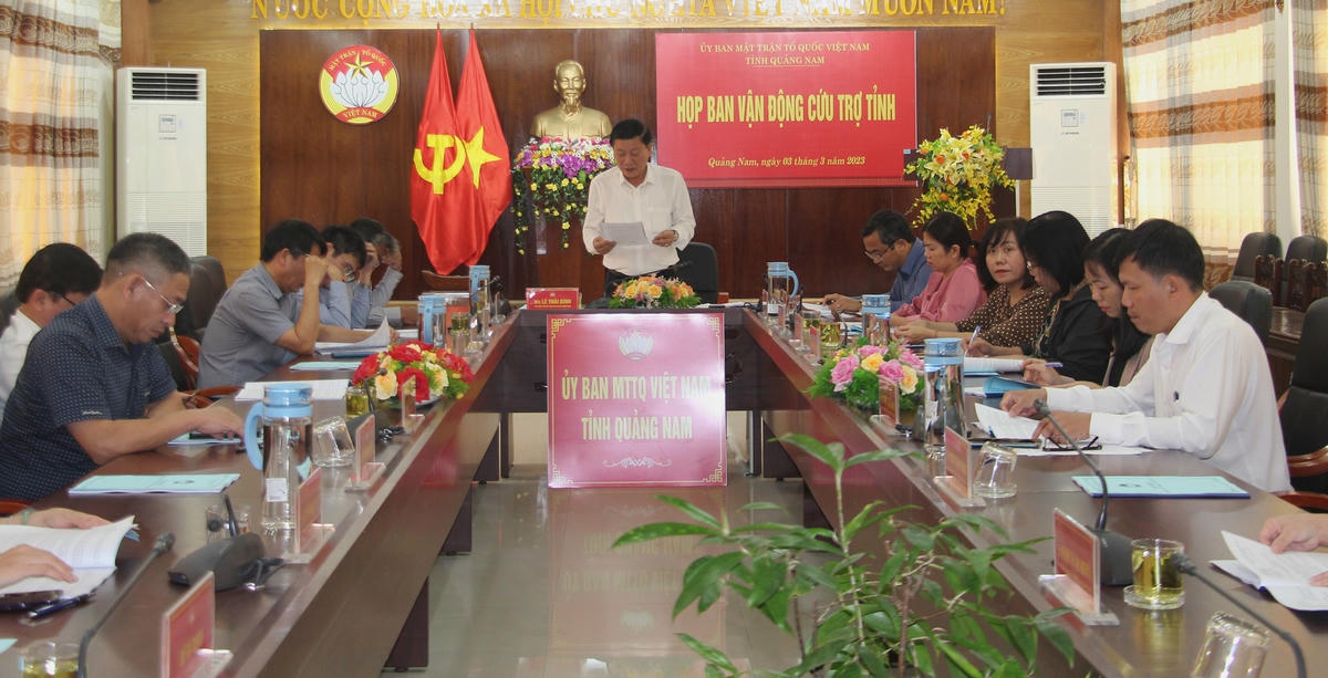 Ngày 8/3, Ủy ban MTTQ Việt Nam tỉnh Quảng Nam cho biết, đã tổ chức cuộc họp Ban vận động cứu trợ tỉnh Quảng Nam. Ông Lê Thái Bình, Phó Chủ tịch Ủy ban MTTQ Việt Nam tỉnh Quảng Nam chủ trì cuộc họp.