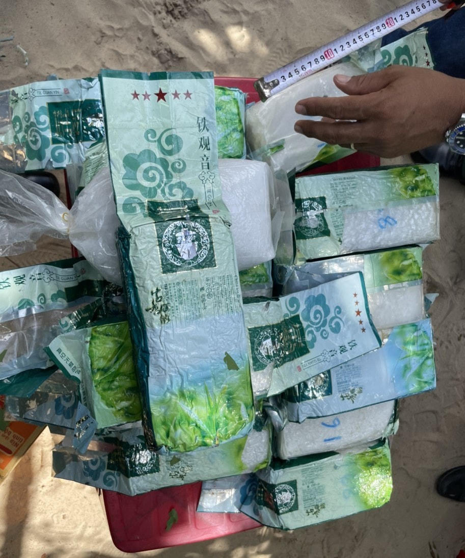 Theo ông Trần T. trình báo, bao tải trên được ông phát hiện lúc 3h sáng cùng ngày, tại bờ biển thuộc thôn Hà Lộc, xã Tam Tiến. Qua kiểm tra, bao tải có màu trắng, kích thước 65 x 43 cm, có chữ nước ngoài (giống chữ Thái Lan); bên trong có 20 gói nilon, màu xanh, kích thước 19 x 7 x 9,5 cm, trên mỗi gói có dòng chữ nước ngoài (giống chữ Trung Quốc) và dòng chữ Tiếng Anh China Tea; trọng lượng mỗi gói là 1 kg; bên trong mỗi gói có chứa các chất rắn màu trắng dạng cục, nghi là ma túy tổng hợp.