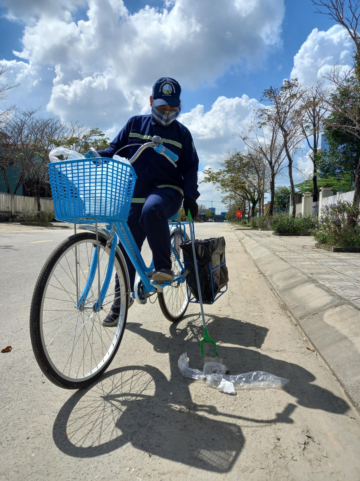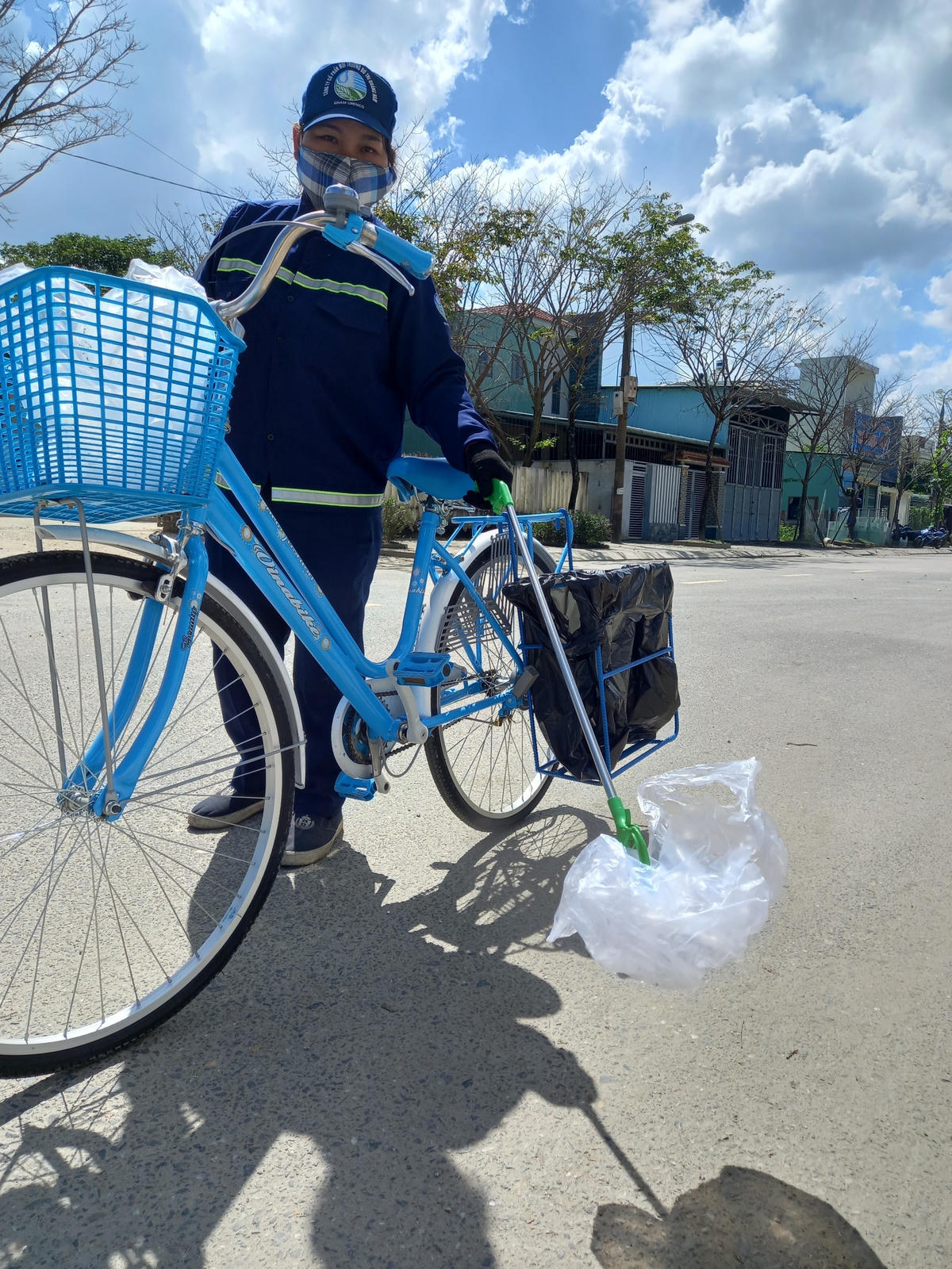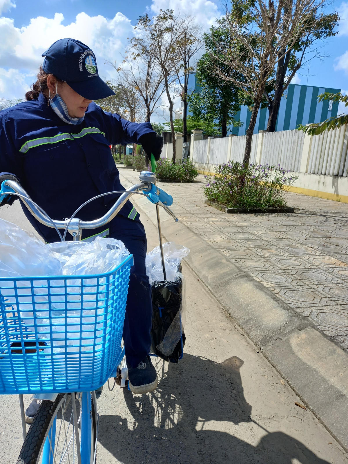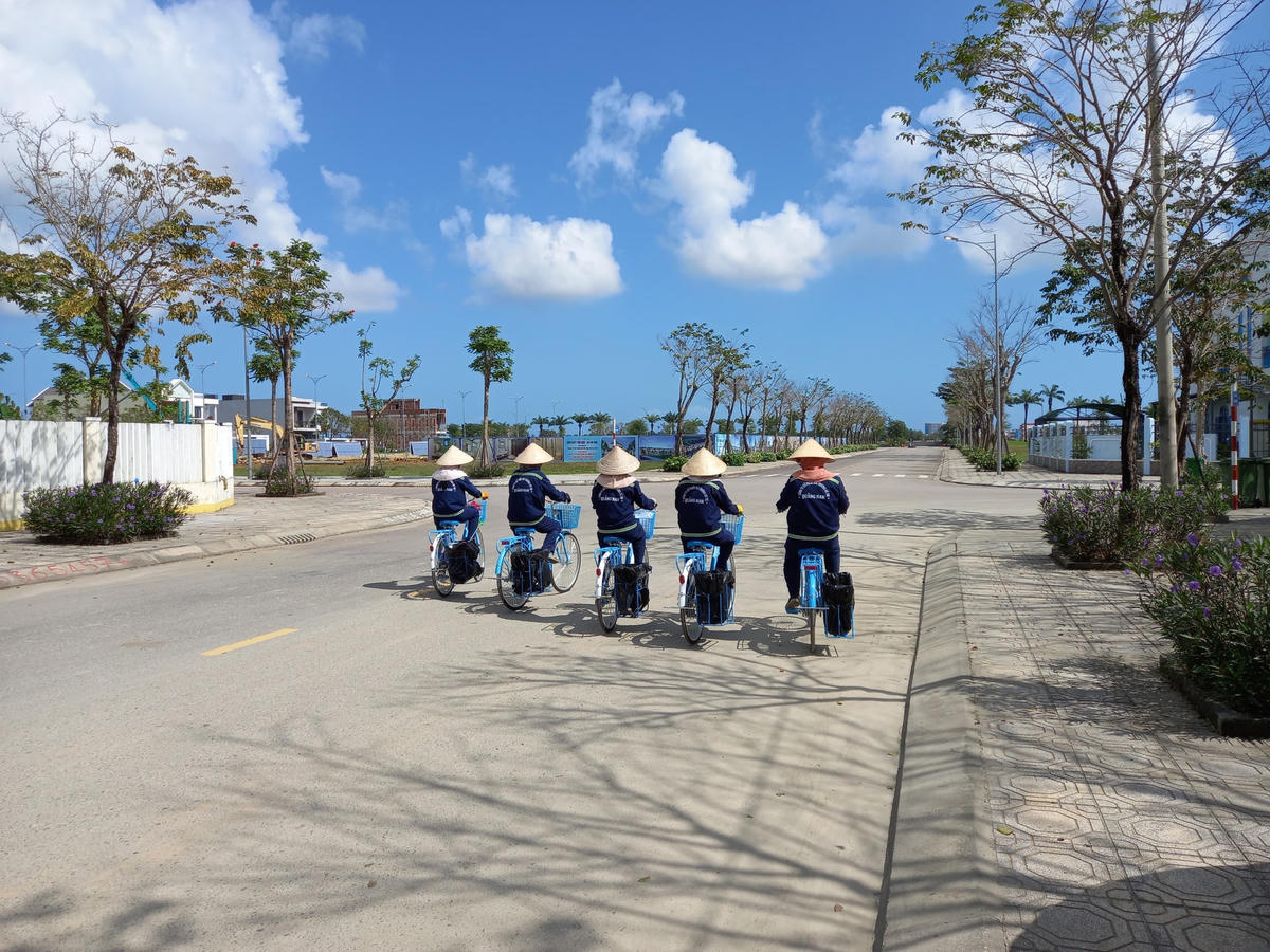 Theo đó, để góp phần làm cho TP Tam Kỳ, tỉnh Quảng Nam tiếp tục có một cái Tết xanh, sạch, đẹp, những ngày qua và kể cả hôm nay mùng 1 Tết, những nữ công nhân xinh xắn của Công ty CP Môi trường Đô thị Quảng Nam với sáng kiến dùng xe đạp và giỏ nhựa đi thu gom rác bay.