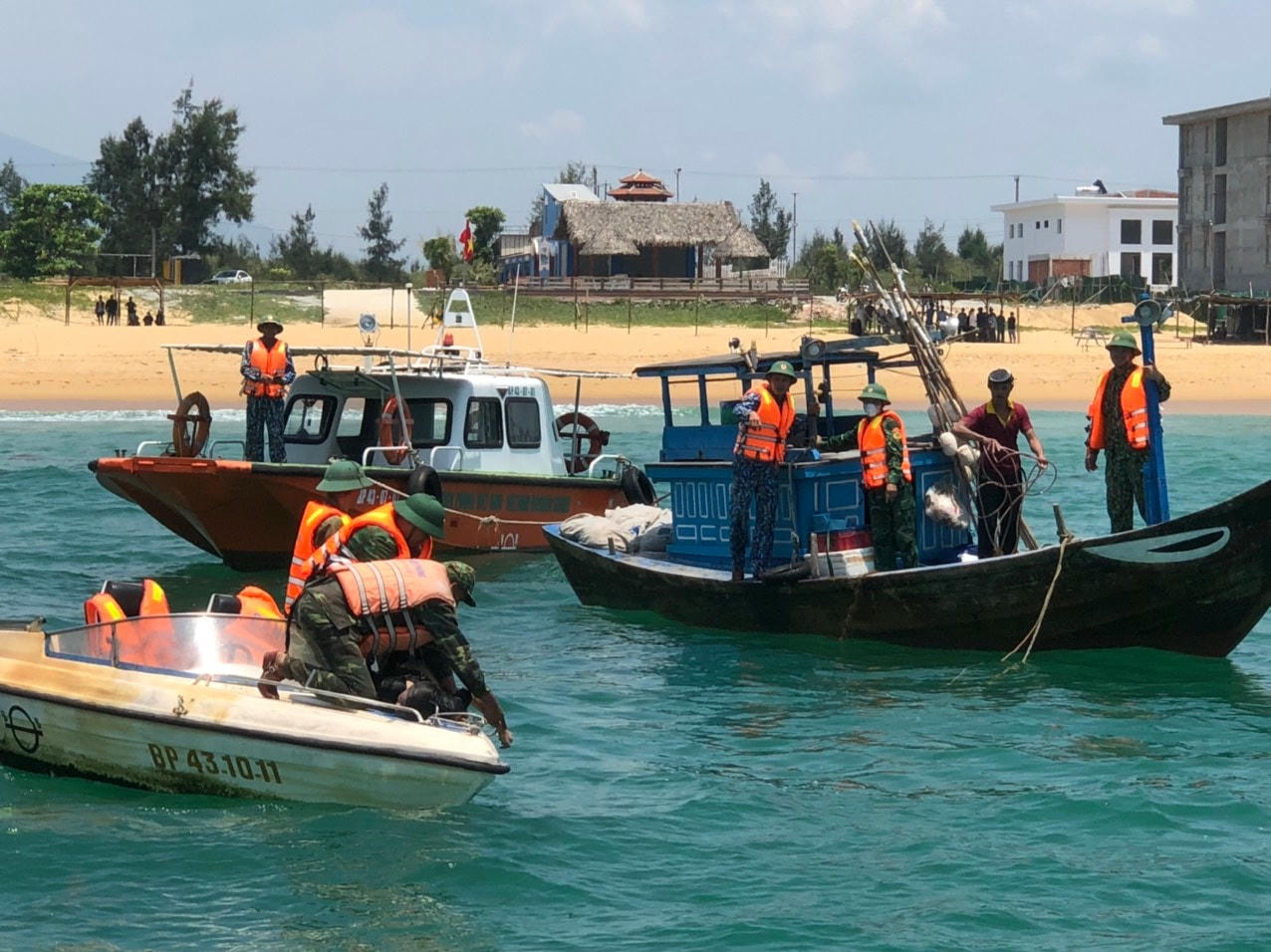 Sau đó, Đồn Biên phòng cửa khẩu cảng Kỳ Hà cử 12 cán bộ, chiến sĩ và 1 ca nô; Hải đội 2 Bộ đội Biên phòng tỉnh cử 4 cán bộ, chiến sĩ và 1 ca nô; Bộ Tư lệnh Vùng Cảnh sát biển 2 cử 6 cán bộ, chiến sĩ và 1 ca nô; đồng thời huy động 3 tàu cá cùng 6 ngư dân, 4 thợ lặn tổ chức tìm kiếm.