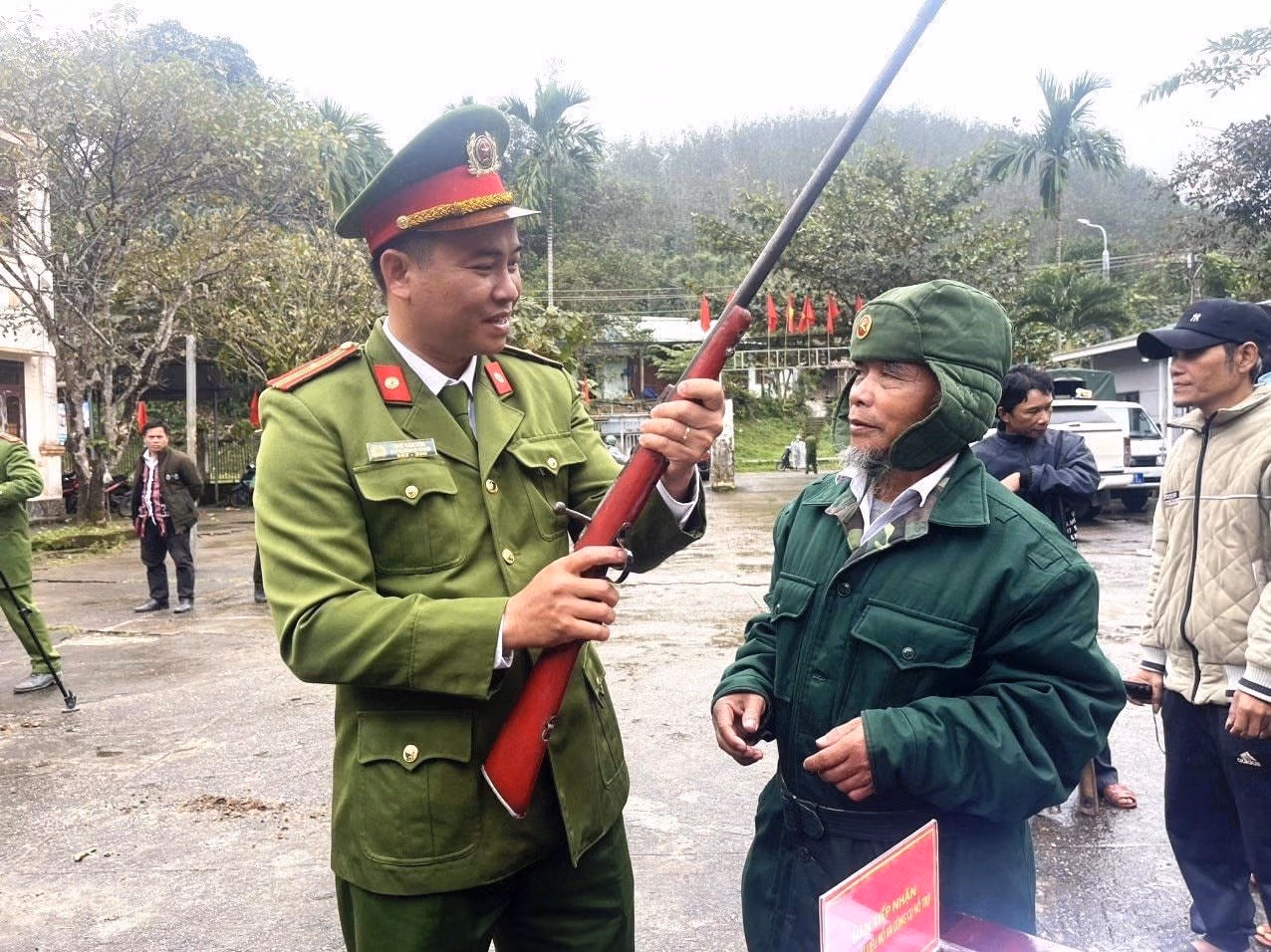 Việc này được lực lượng công an thực hiện bằng những sinh kế cụ thể, phù hợp với đời sống người dân bản địa. Khi người dân đem giao nộp vũ khí tự chế sẽ nhận được những con giống như vịt xiêm, heo cỏ, heo rừng,… đem về để phát triển kinh tế gia đình.