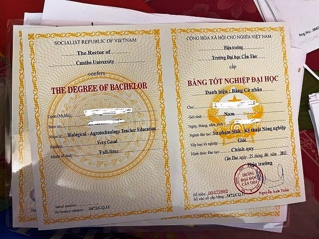 Tiến hành khám xét chỗ ở của V., lực lượng Công an thu giữ 46 phôi GPLX dạng thẻ nhựa, 66 phôi CCCD dạng thẻ nhựa, 11 CCCD giả, 4 CMND giả, 7 GPLX giả đã in thông tin, 598 tem bảo mật các loại, các văn bằng chứng chỉ tốt nghiệp đại học, cao đẳng, trung cấp, 1 dấu để đóng dấu nổi CMND và nhiều phương tiện, tài liệu khác có liên quan.