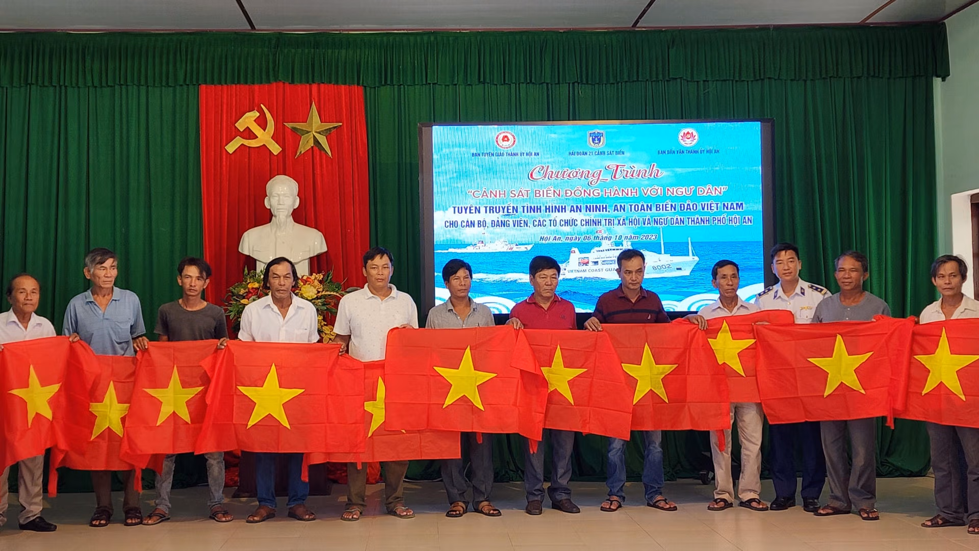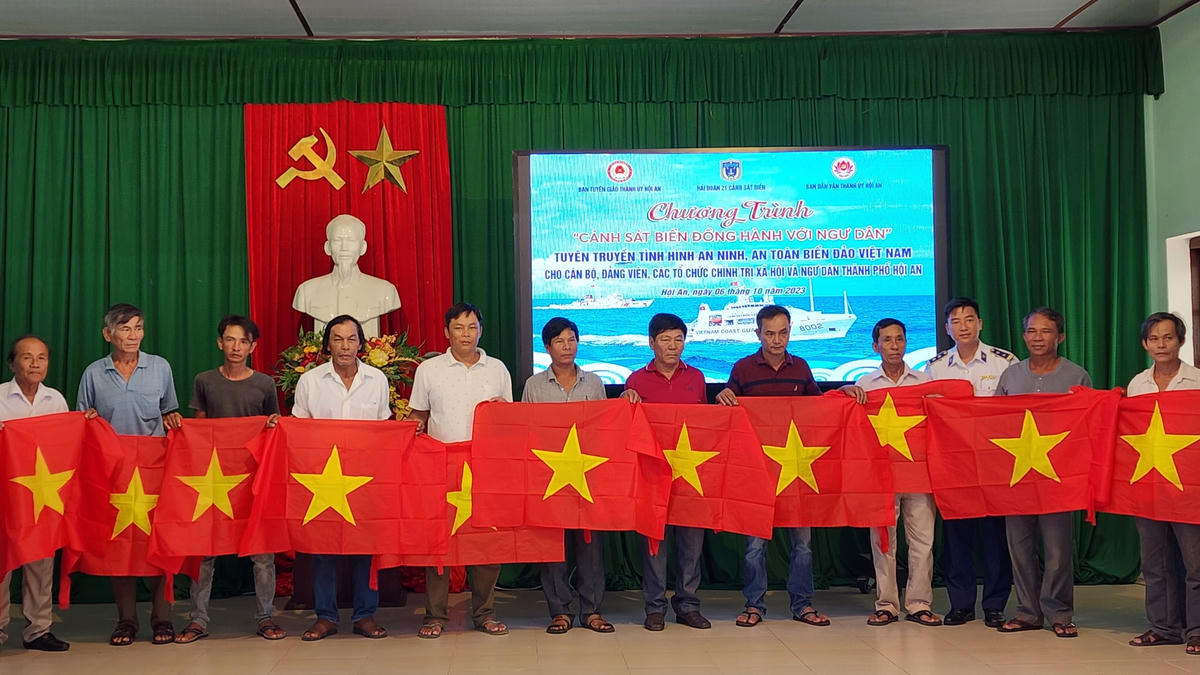 Dịp này, Hải đoàn 21 cũng tặng cho ngư dân TP Hội An 200 lá cờ Tổ quốc.