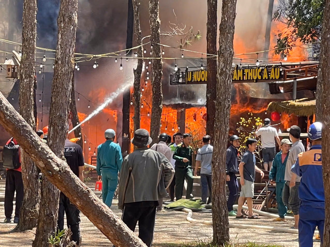 Quảng Ngãi: Cháy tại Khu kinh tế đêm Măng Đen, 4 ki-ốt bị thiêu rụi