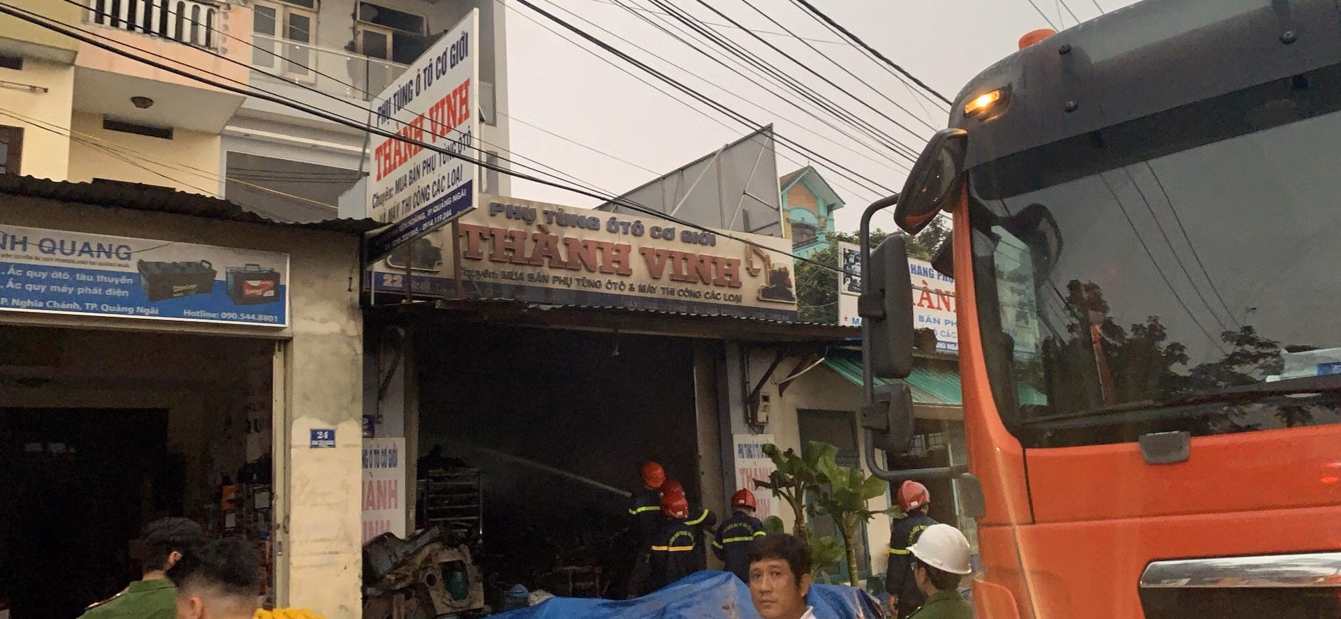 Theo đó, vào khoảng 5 giờ, ngày 27/2, tại cửa hàng phụ tùng ô tô cơ giới ở số 22 đường Đinh Tiên Hoàng, phường Nghĩa Chánh, TP Quảng Ngãi, tỉnh Quảng Ngãi bất ngờ xảy ra vụ cháy lớn.