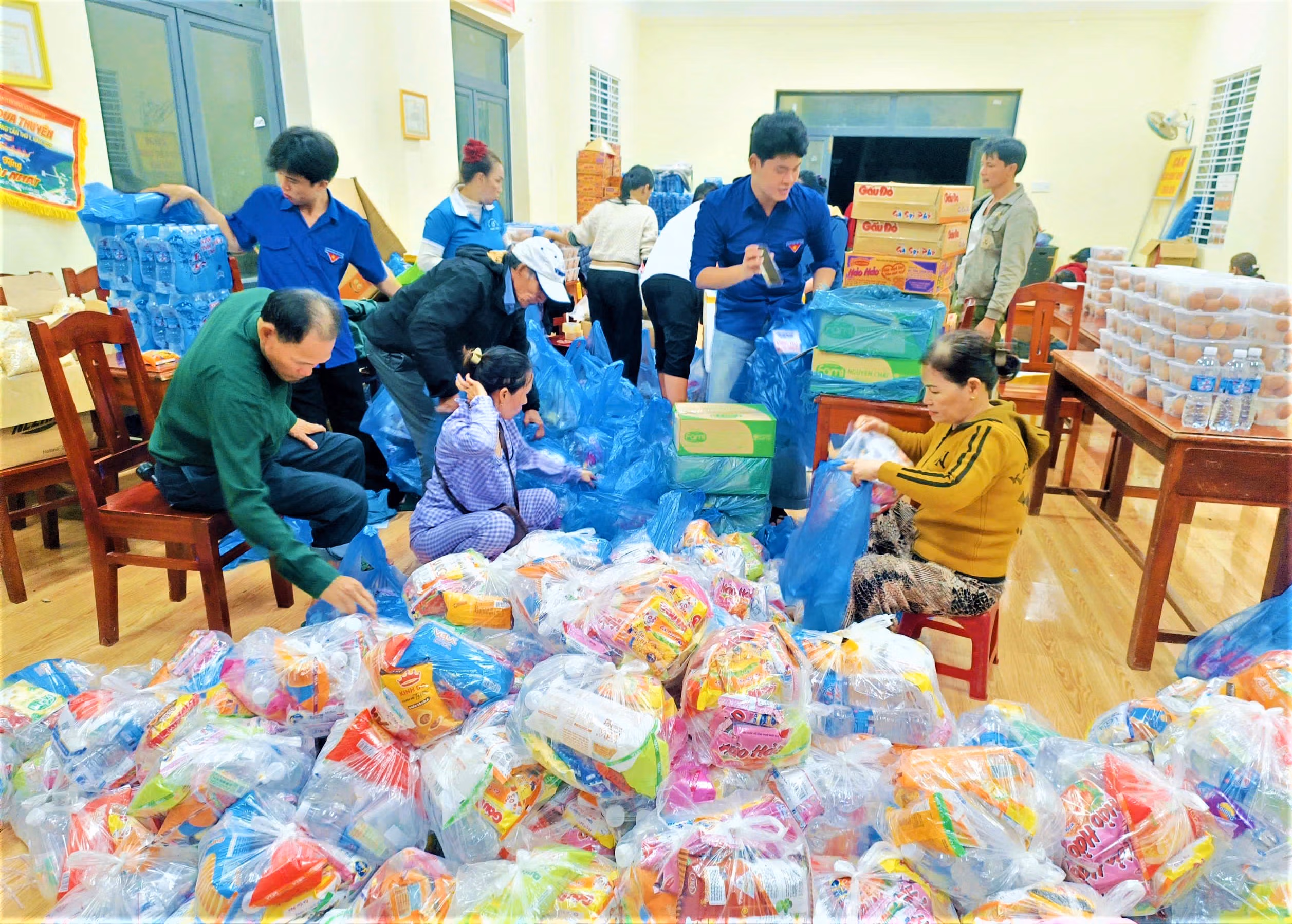 Tại xã miền núi Trà Bồng, tỉnh Quảng Ngãi, người dân cũng chuẩn bị những phần quà, gói từng chiếc bánh chưng, bánh tét để kịp gửi đến đồng bào đang căng mình chống chọi với mưa lũ.