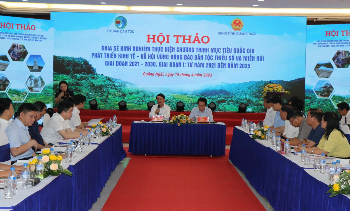 Ngày 19/4, tại TP Quảng Ngãi, Ủy ban Dân tộc phối hợp với UBND tỉnh Quảng Ngãi tổ chức Hội thảo chia sẻ kinh nghiệm thực hiện Chương trình mục tiêu quốc gia phát triển kinh tế-xã hội vùng đồng bào dân tộc thiểu số (DTTS) và miền núi giai đoạn 2021-2030, giai đoạn 1 (2021-2025) của 19 tỉnh trong khu vực miền Trung, Tây Nguyên.