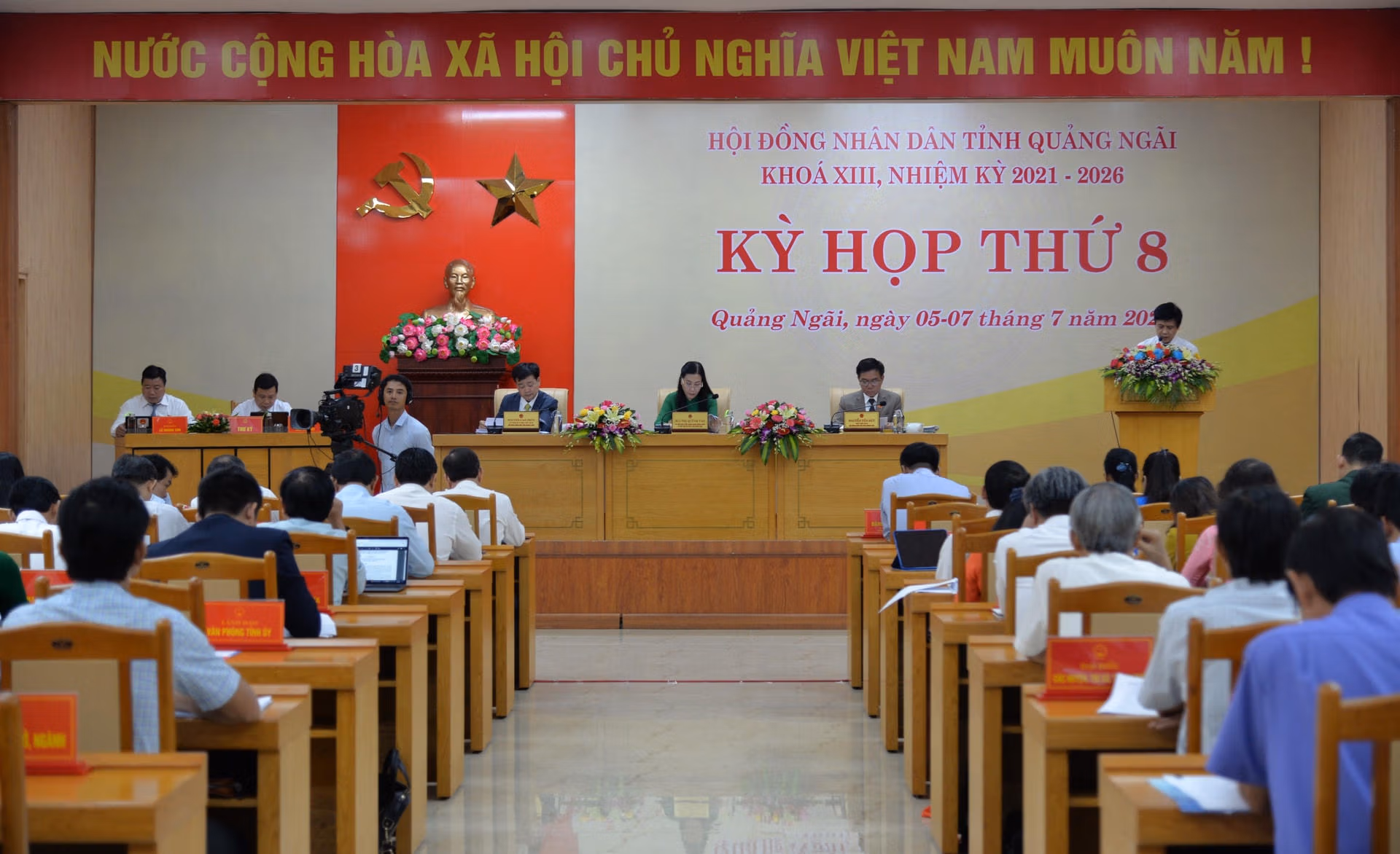 Ngày 5/7, HĐND tỉnh Quảng Ngãi Khóa XIII, nhiệm kỳ 2021 - 2026 đã khai mạc Kỳ họp thứ 8. Bà Bùi Thị Quỳnh Vân, Bí thư Tỉnh ủy, Chủ tịch HĐND tỉnh Quảng Ngãi cùng các Phó Chủ tịch HĐND tỉnh là ông Nguyễn Cao Phúc và ông Nguyễn Tấn Đức đồng chủ trì kỳ họp.