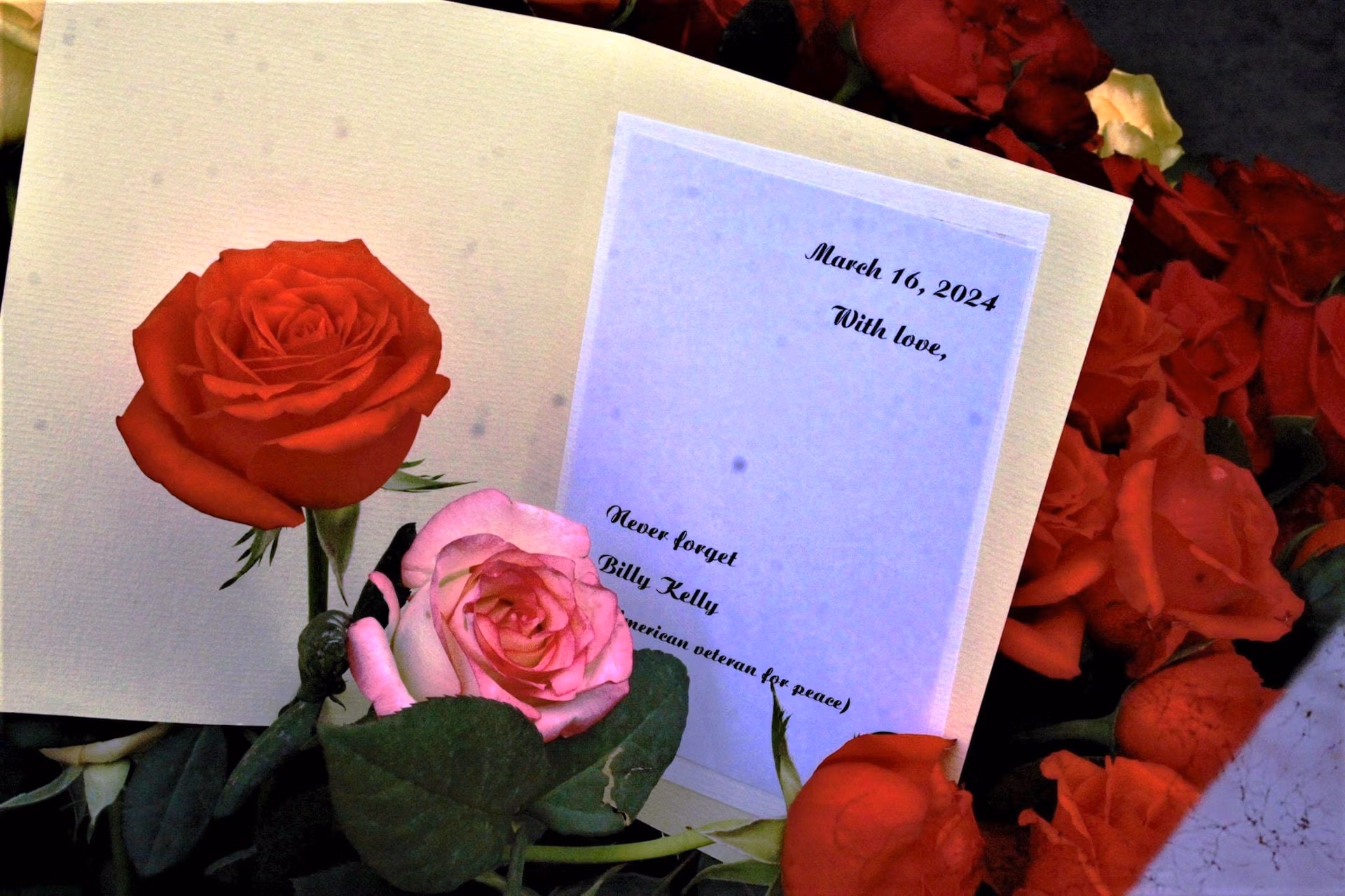 Một lần nữa tại Khu Chứng tích Sơn Mỹ, lãnh đạo tỉnh Quảng Ngãi cùng người dân địa phương đã dâng hương, dâng hoa lên tượng đài Sơn Mỹ, tưởng nhớ 504 thường dân Sơn Mỹ bị thảm sát và cầu nguyện hòa bình.