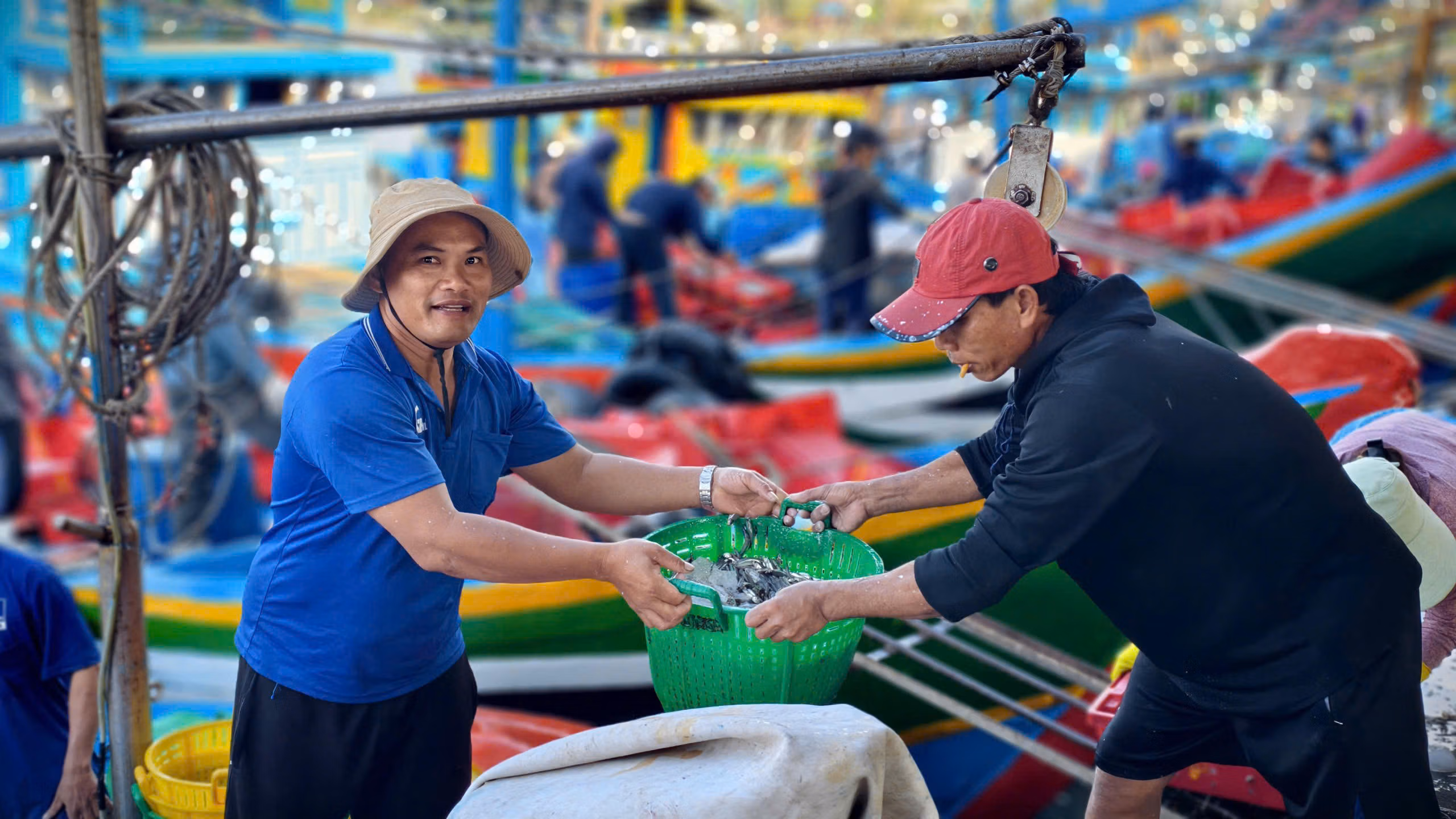 Tại các cảng cá Sa Kỳ, Tịnh Hòa, xã Đông Sơn, Tịnh Kỳ, xã Tịnh Khê, Mỹ Á, phường Trà Câu, tỉnh Quảng Ngãi, tàu ra vào tấp nập từ sáng sớm đến chiều muộn. Thương lái, xe tải túc trực sẵn chờ thu mua, những mẻ cá tươi được nhanh chóng đưa lên bờ trong không khí khẩn trương của mùa biển cuối năm.