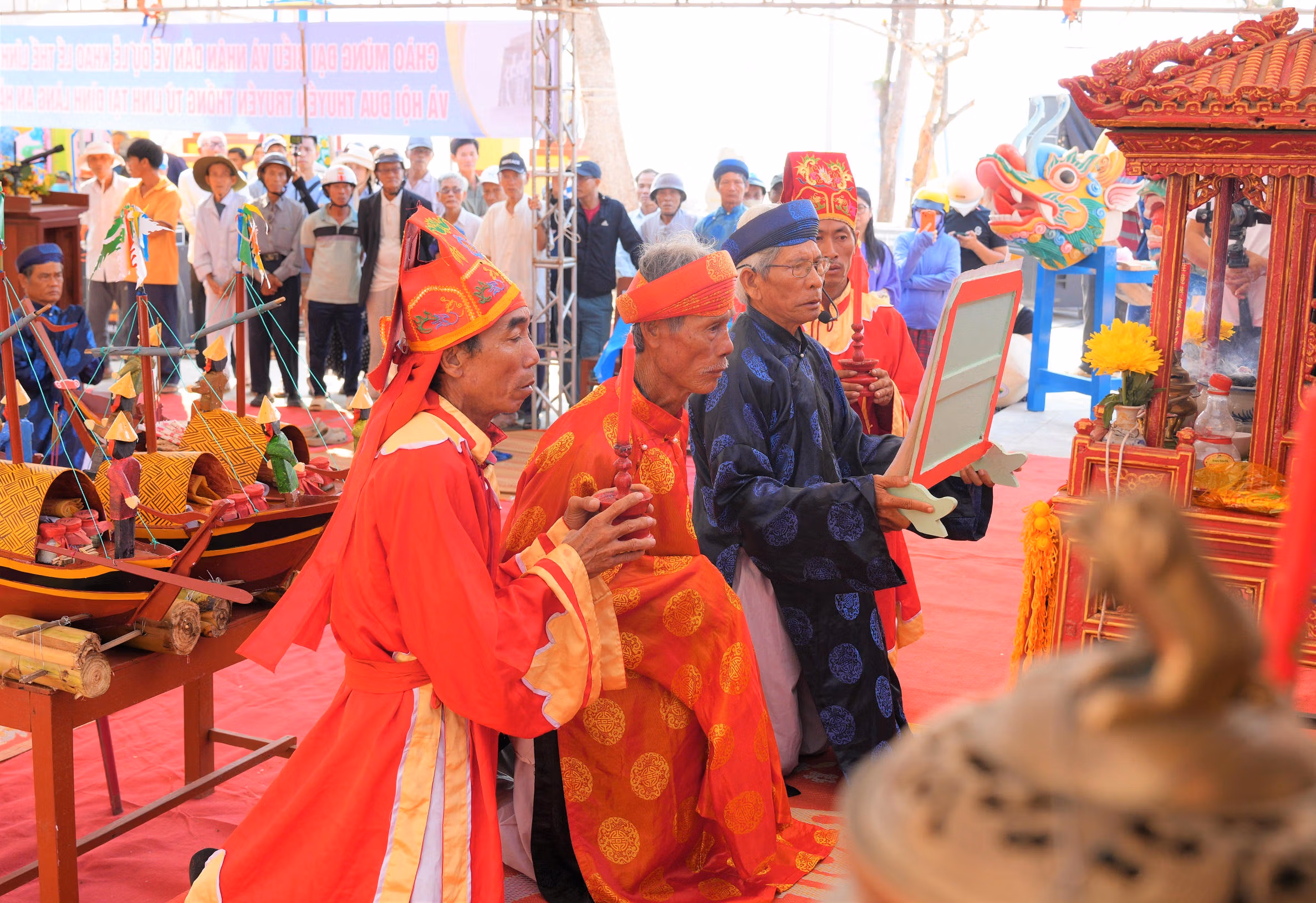 Theo đó, lễ khao lề thế lính Hoàng Sa năm nay diễn ra với đầy đủ các nghi thức như: lễ cáo yết nghinh thần, nhập yết, chánh tế khao lề thế lính Hoàng Sa, lễ thả thuyền và hội đua thuyền tứ linh. Mỗi nghi thức đều được thực hiện trang nghiêm, thể hiện sự tôn kính đối với tiền nhân.
