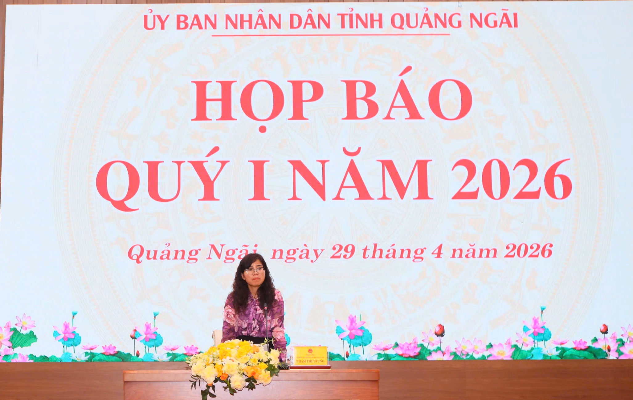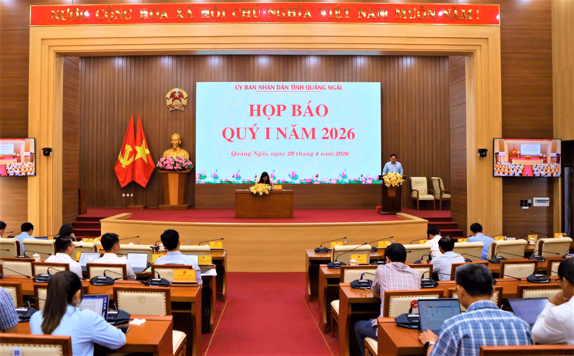 Sáng 29/4, UBND tỉnh Quảng Ngãi tổ chức họp báo thông tin tình hình kinh tế-xã hội quý I năm 2026, nhiệm vụ trọng tâm quý II năm 2026.